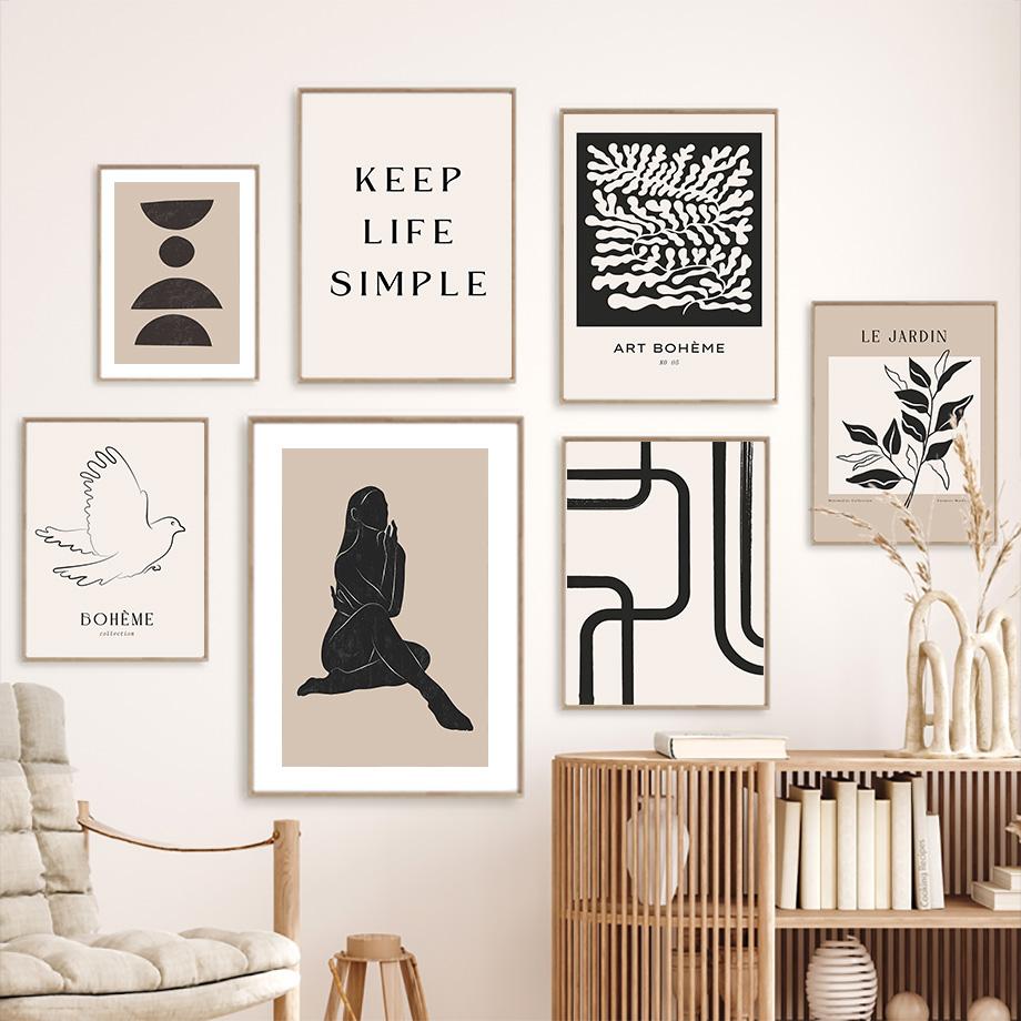 Богемия плакат с птицами бежевый черный абстрактные линии искусства холст картины настенный принт фотографии спальня гостиная интерьер домашний декор