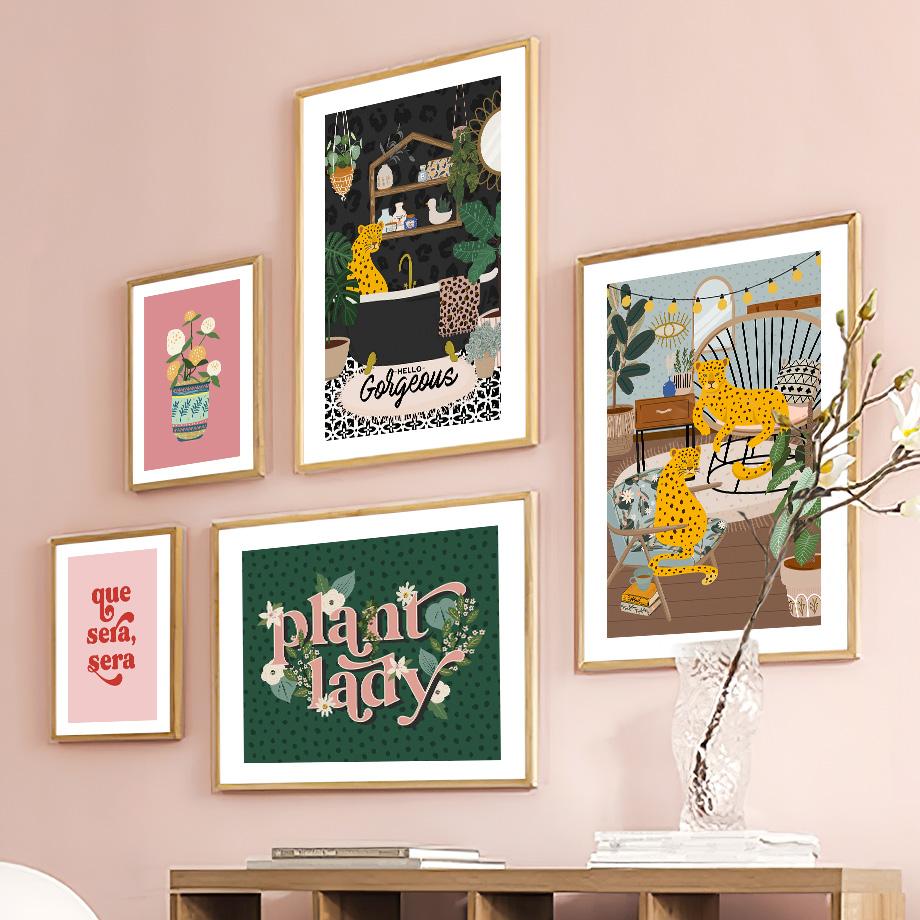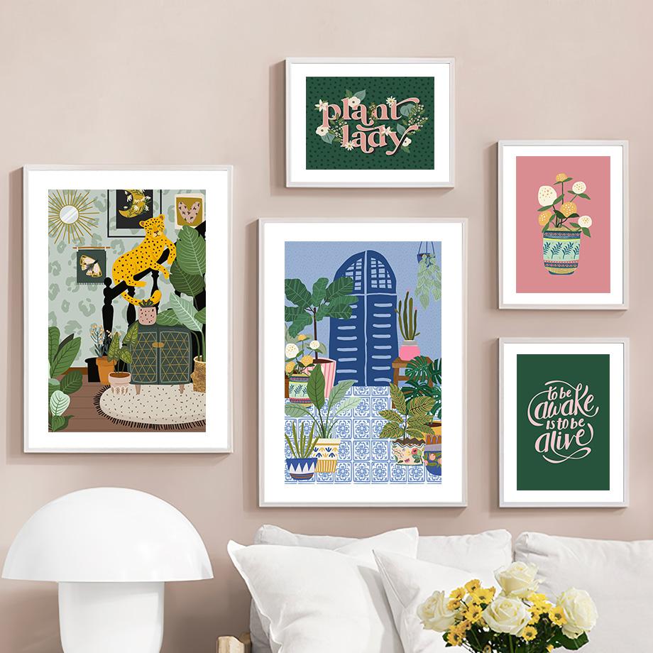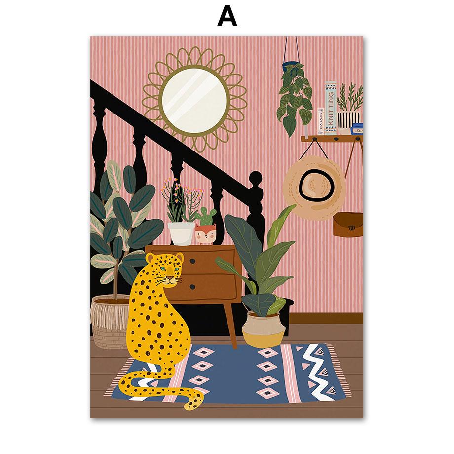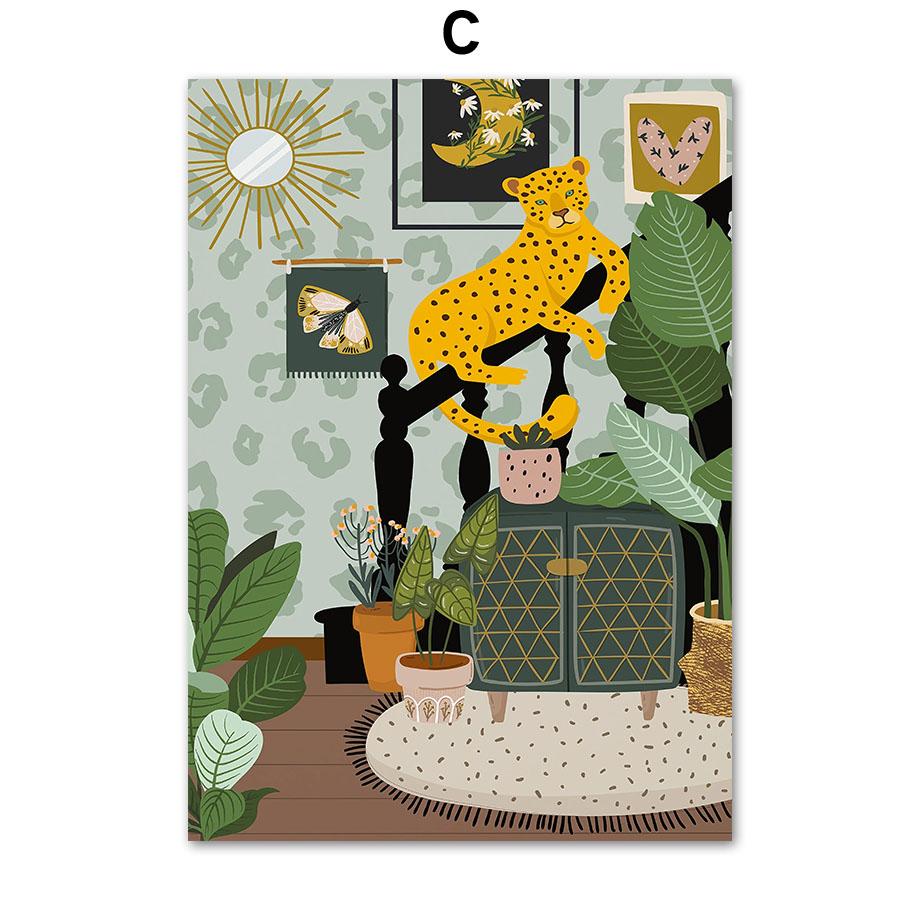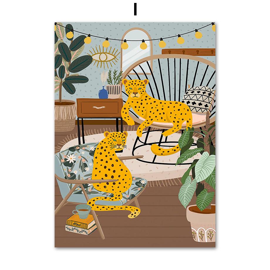Леопардовые тропические растения в горшках, Монстера, настенная живопись на холсте, постеры на скандинавскую тему и принты, настенные панно для декора гостиной
