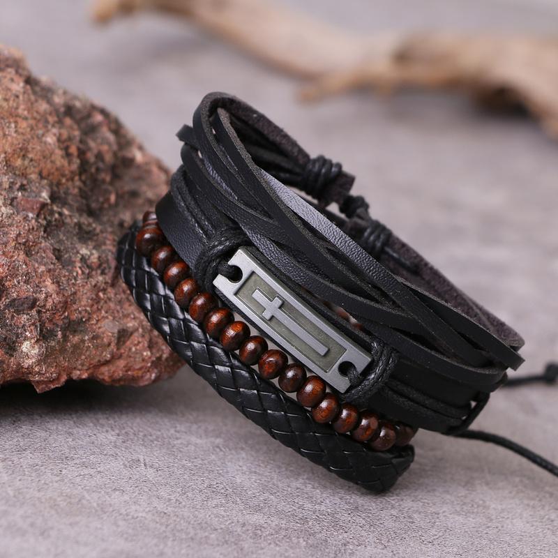 Кожаные мужские браслеты в стиле панк ручной работы, широкие манжеты, веревочный браслет, тканые браслеты-браслеты