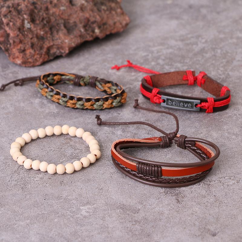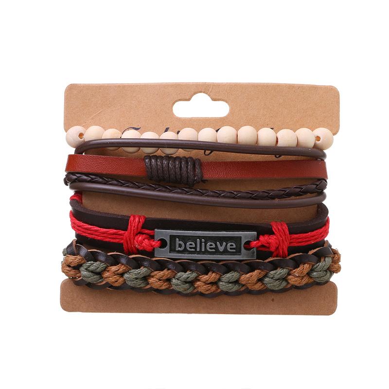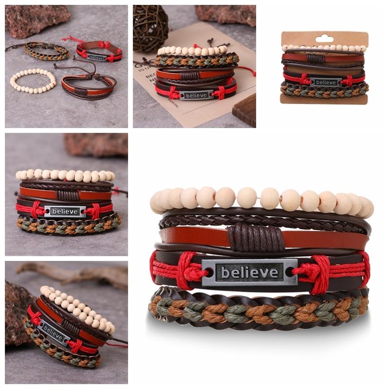 Браслет Винтажный плетеный браслет-манжета Классический мужской кожаный браслет Многослойный браслет