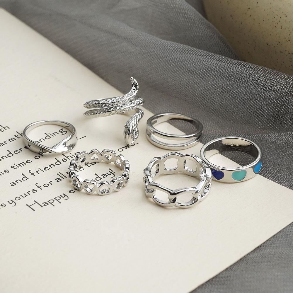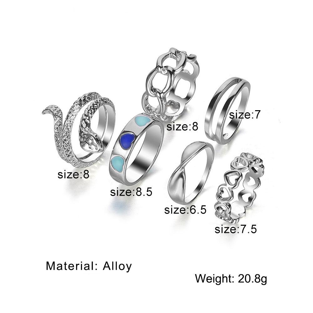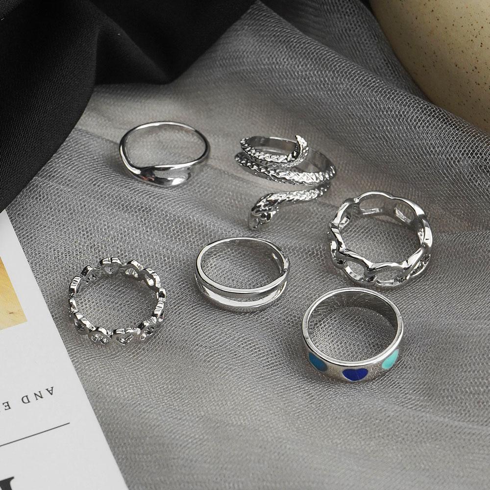 6 колец/набор богемных ювелирных изделий, подарочный набор колец, змеиное открытие, любовь, выдолбленный подарок, вечерние женские кольца