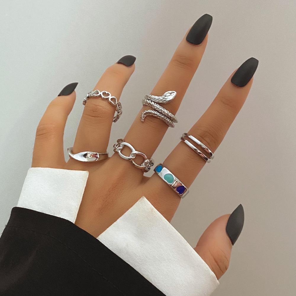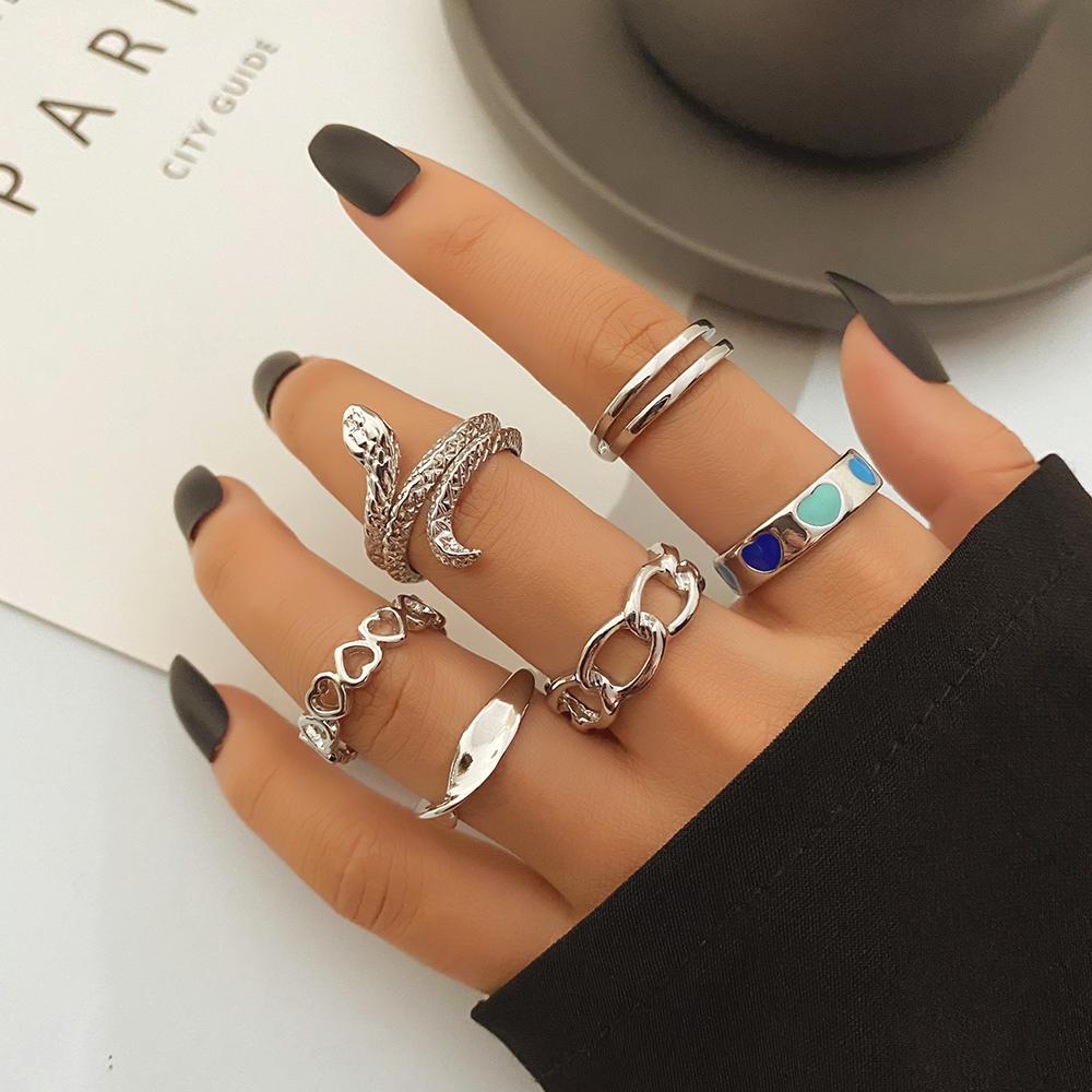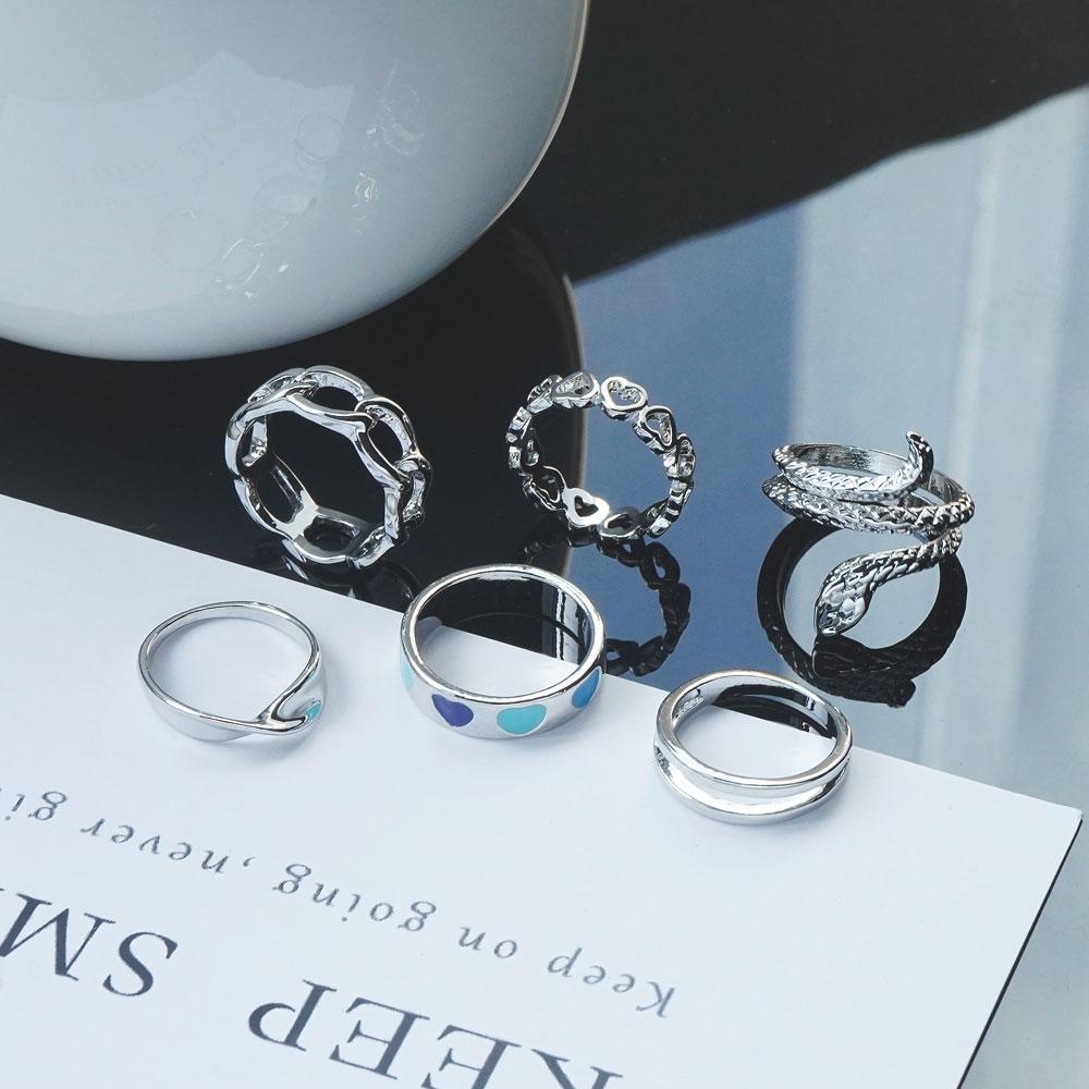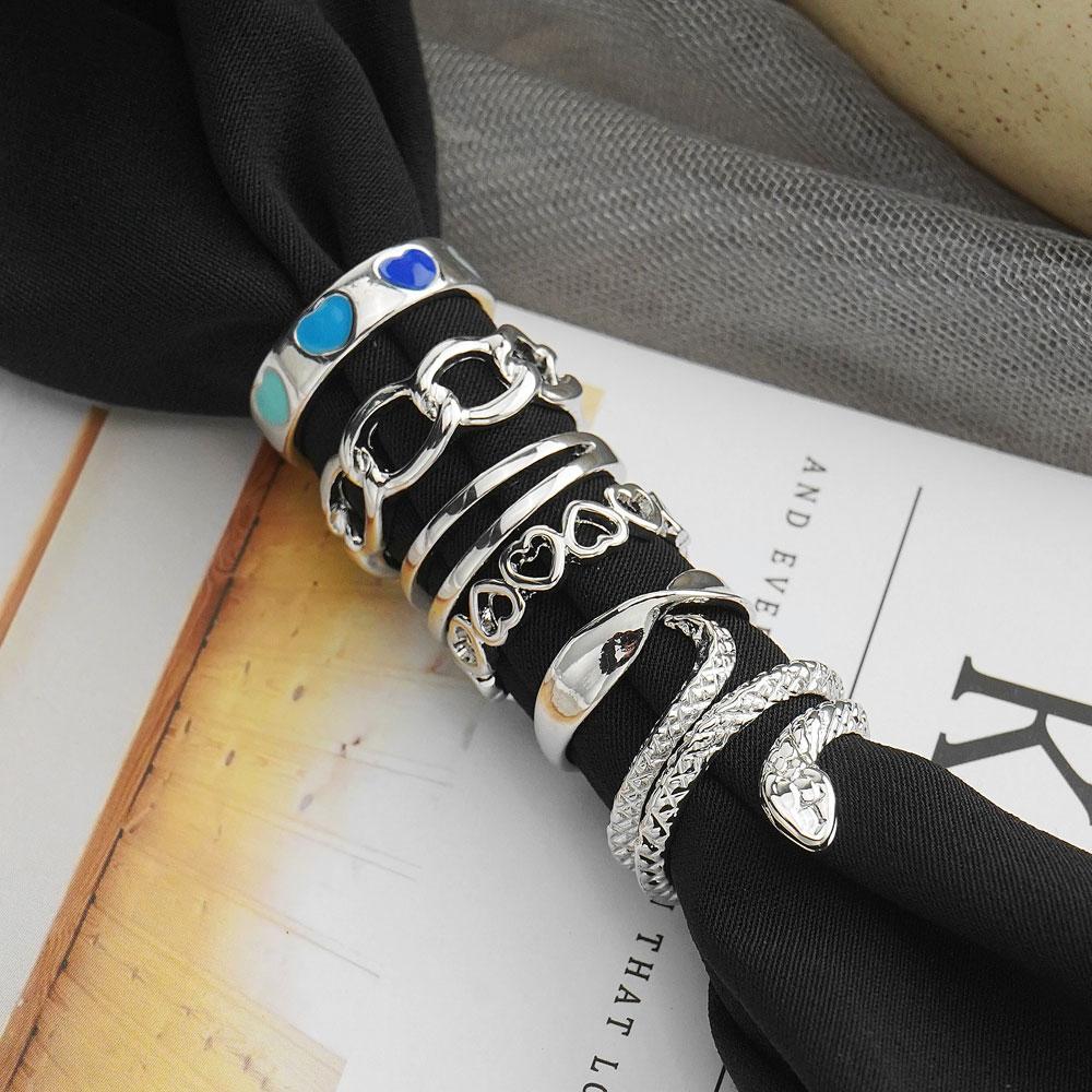 6 колец/набор богемных ювелирных изделий, подарочный набор колец, змеиное открытие, любовь, выдолбленный подарок, вечерние женские кольца