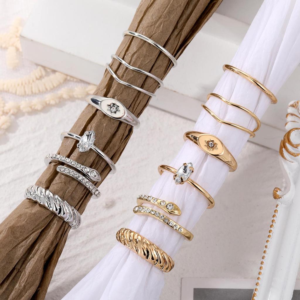 Набор универсальных колец Love Snake с регулировкой открытия бриллианта, золото, серебро