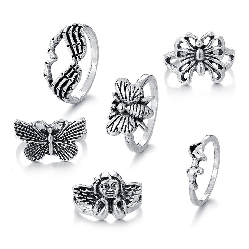 Скелет Пальмы Хэллоуин Ужас Ангел Девушка Бабочка Выдолбленные Ювелирные Кольца Набор — купить товар онлайн с бесплатной доставкой по всему миру!