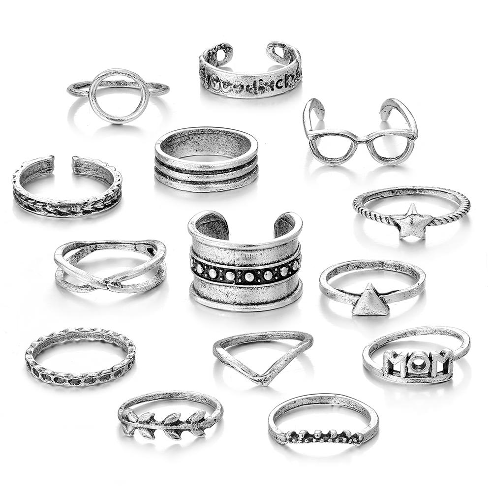 Набор из 14 предметов, винтажные ювелирные изделия, кольцо для пары, подходящее кольцо, элегантный набор колец с темпераментом