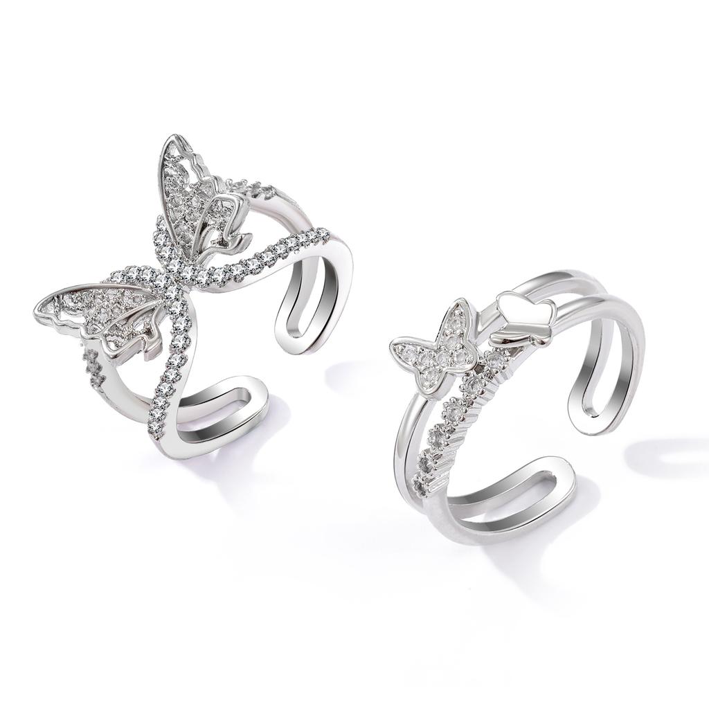 Роскошные серебряные гламурные блестящие кольца для девочек, милые открытые одинаковые кольца с бабочкой для пары, модные элегантные двухслойные полые кольца