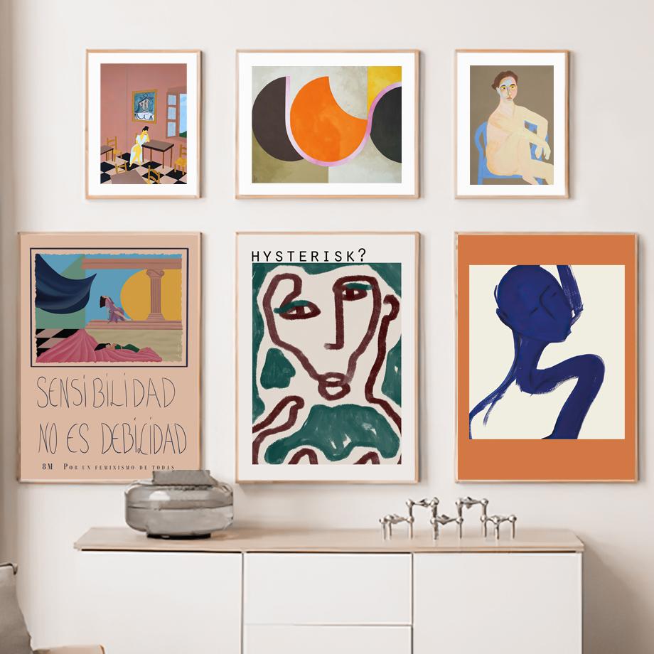 Абстрактная линия фигуры девушки, обнаженная геометрия, настенная живопись на холсте, плакаты на скандинавскую тему и принты, настенные панно для декора гостиной