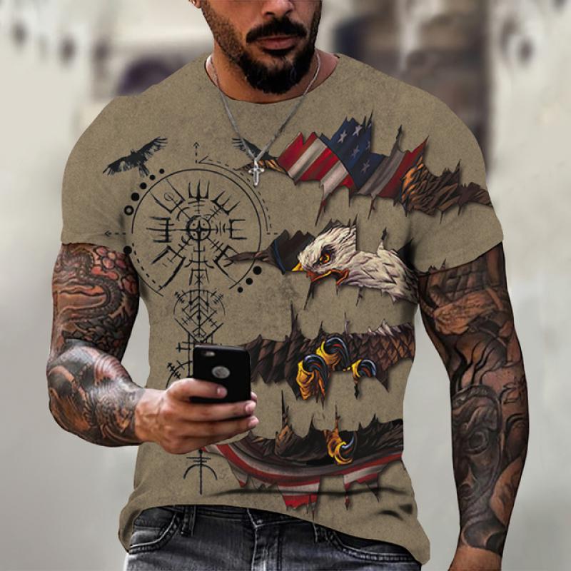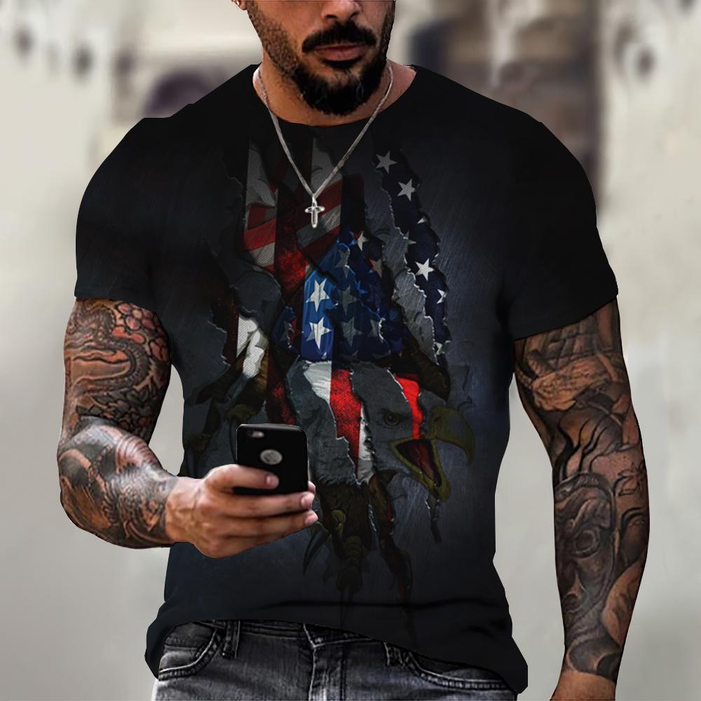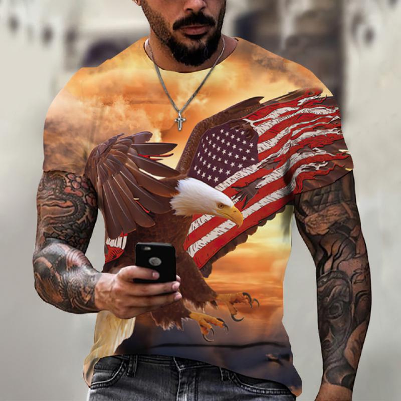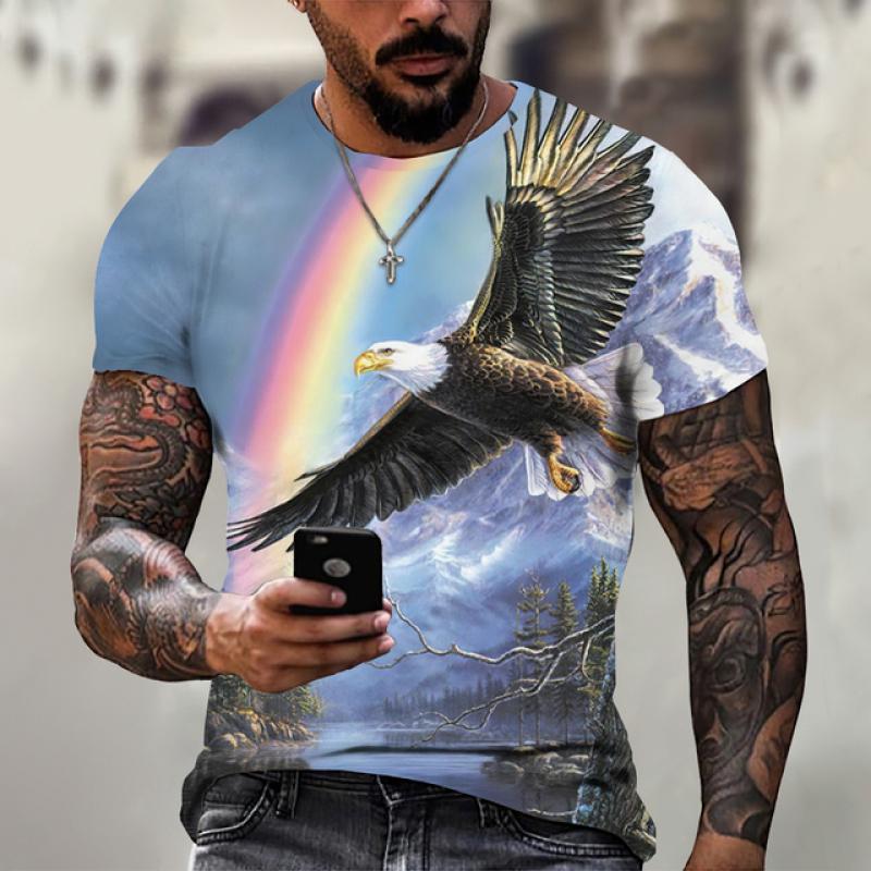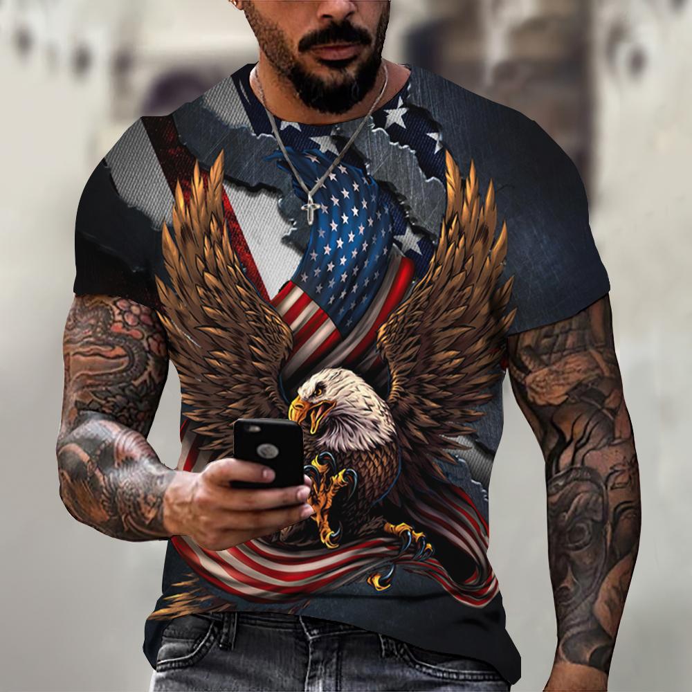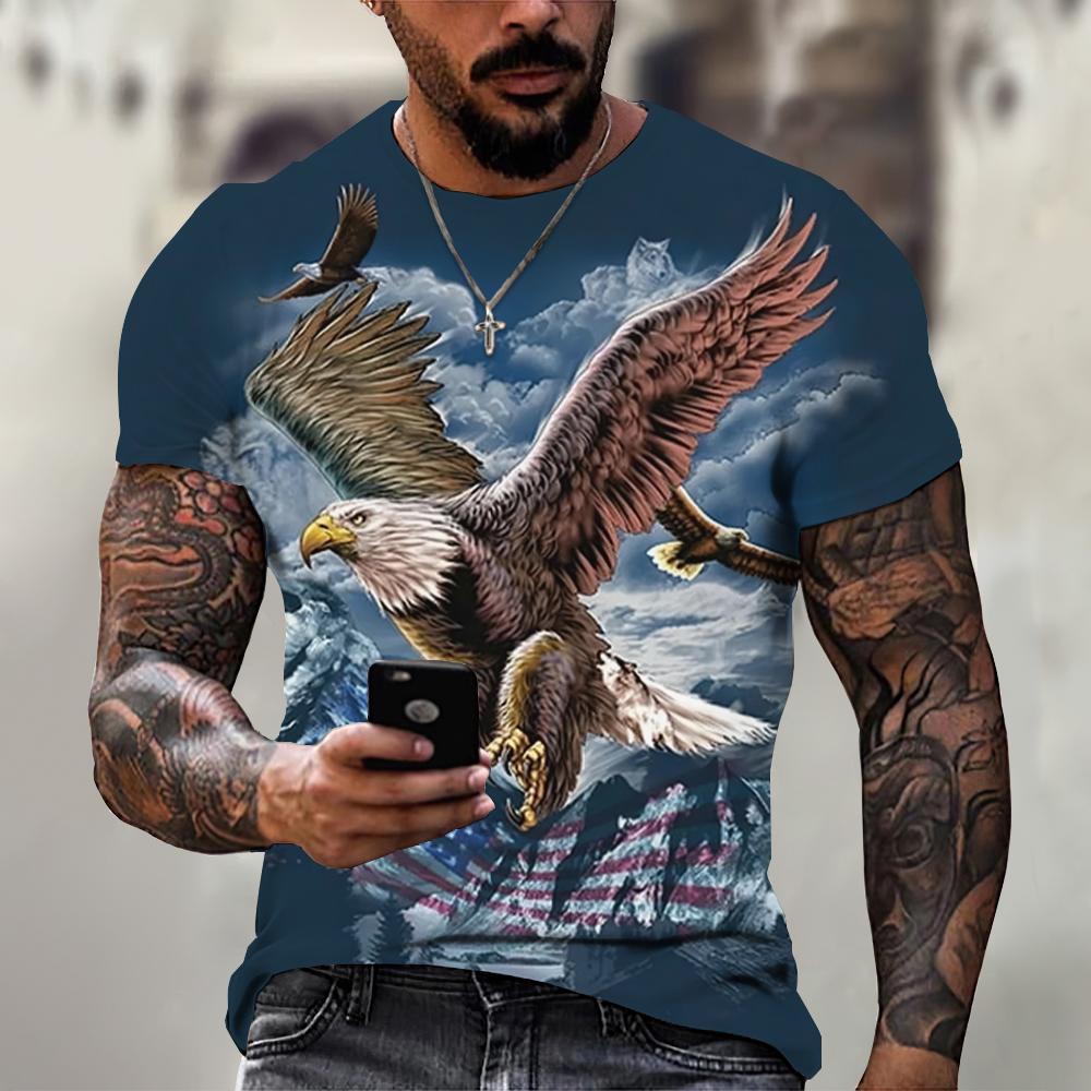 Европейская и американская мода, футболки с рисунком орла, летние мужские трендовые повседневные футболки с принтом в стиле хип-хоп, уличный стиль