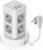 Tessan Многорозеточная защита от перенапряжения 3600 Вт 16 А, 8-контактный удлинитель USB C Удлинитель с несколькими штепсельными вилками с удлинительным кабелем длиной 2 м, распределительная розетка Socket Tower для дома, серый