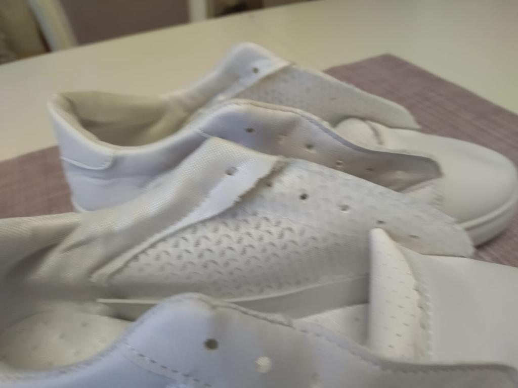 Купилась на красивое фото и характеристики, а по факту чудовищный обман, насмешка над покупателем. Обещали 100% качество, но на самом деле хлопковый подкладочный материал отсутствует, носок не прокрашен, передние галстуки разного цвета, сетка местами не вшита в подошву, верхний край обуви не обработан (проведя рукой по краю - сеткой уколола палец). Обувь без упаковки, была завернута в пузырчатую пленку, помята, ни одного опознавательного знака и ко всему с сильным запахом. В жизни не встречала такого ужаса, противно в руки брать.