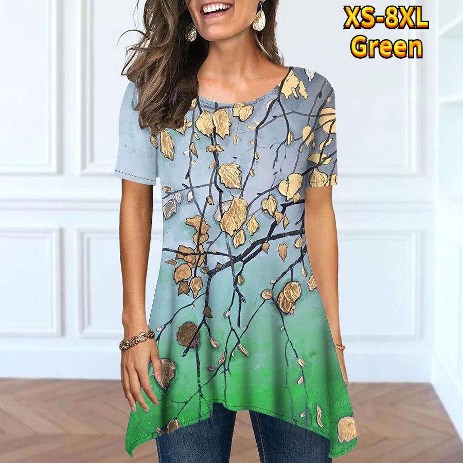 Летняя женская модная и удобная уличная одежда. Базовая повседневная одежда с короткими рукавами и круглым вырезом под открытым свободным топом XS-8XL.