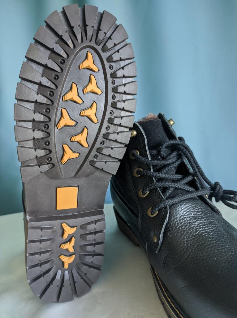 Добротные, тёплые мужские ботинки из натуральной кожи. Сразу хвалю и рекомендую. 👍 Заказывал сын, когда был дома. Уехал раньше, чем рассчитывал, поэтому обувь придется пересылать. Магазин проверенный, в качестве я не сомневалась. Уже заказывала здесь мужскую обувь. У сына лапа приличная, но у этой модели ботинок размерный ряд - аж до 50! До длины стопы 30,5-31 см. Минимальный размер - 40 (стопа 25-25,5 см). Сыну понравилось, что носы у ботинок - круглые, не зауженные. Кожа действительно натуральная. Мех искусственный, но плотненький. Ботинки на шнурках, молний нет. Шнурки качественные, с хлопком, не скользкие. Люверсы надёжные, металлические. Сверху дополнительные крючки. Язычки и верхняя часть ботинок - замша. Подошва резиновая, с протекторами, в меру эластичная. Толщина спереди - 1,5 см, в области каблука - 3 см. Полная высота ботинка - 17 см. На стопу длиной 28 см заказали 46 размер. Примерить на сына сейчас возможности нет, но длина стельки из его старых зимних ботинок - такая же, около 29,5 см. Доставлена посылка за три недели. Есть резон присмотреться и заказать. 👍 ⭐⭐⭐⭐⭐