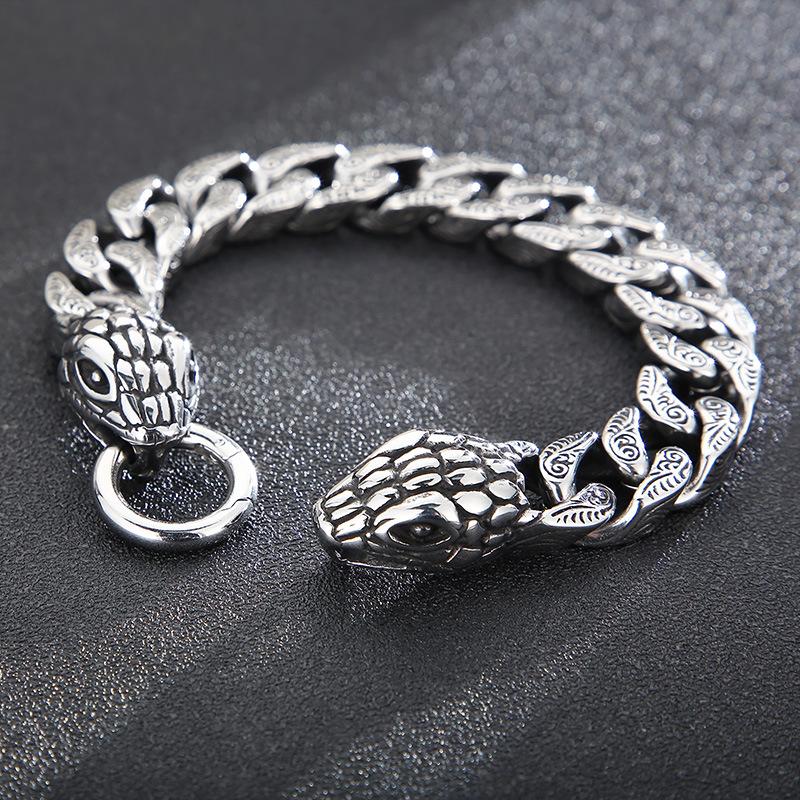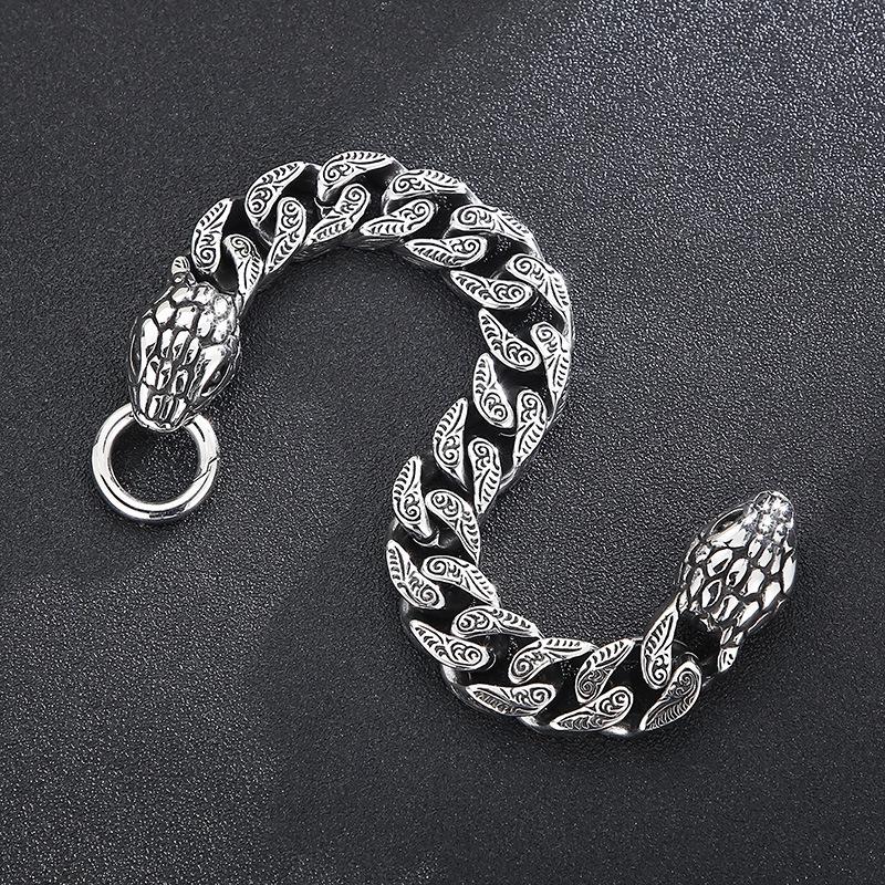 Кольцо на руку с цепочкой в виде змеиной головы в стиле ретро