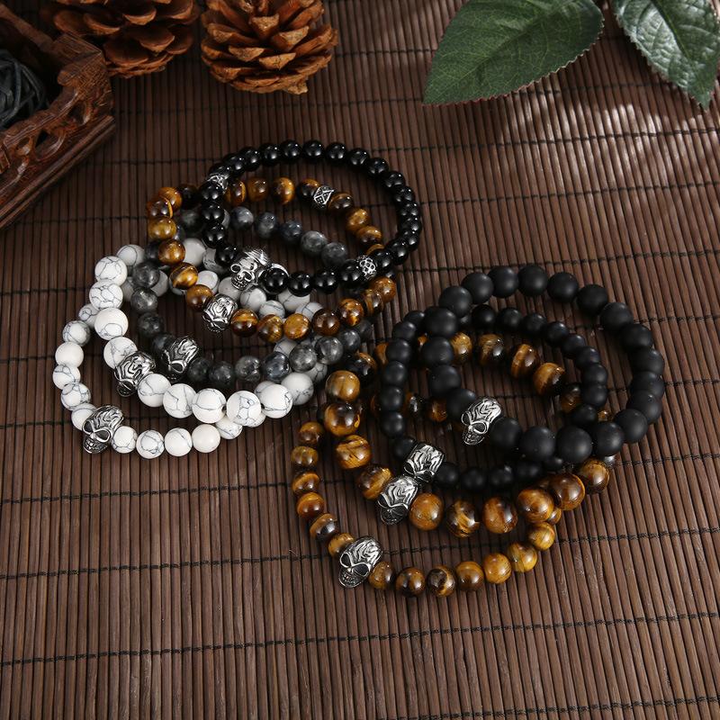 Браслет ручной работы из белой сосны, браслет из бисера в стиле панк, тигровый глаз, камень, агат, бусина, браслет из титановой стали