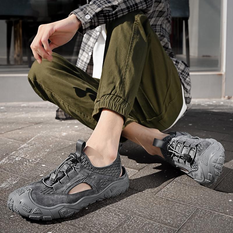 Летние кожаные мужские повседневные сандалии большого размера в стиле ретро ручной работы