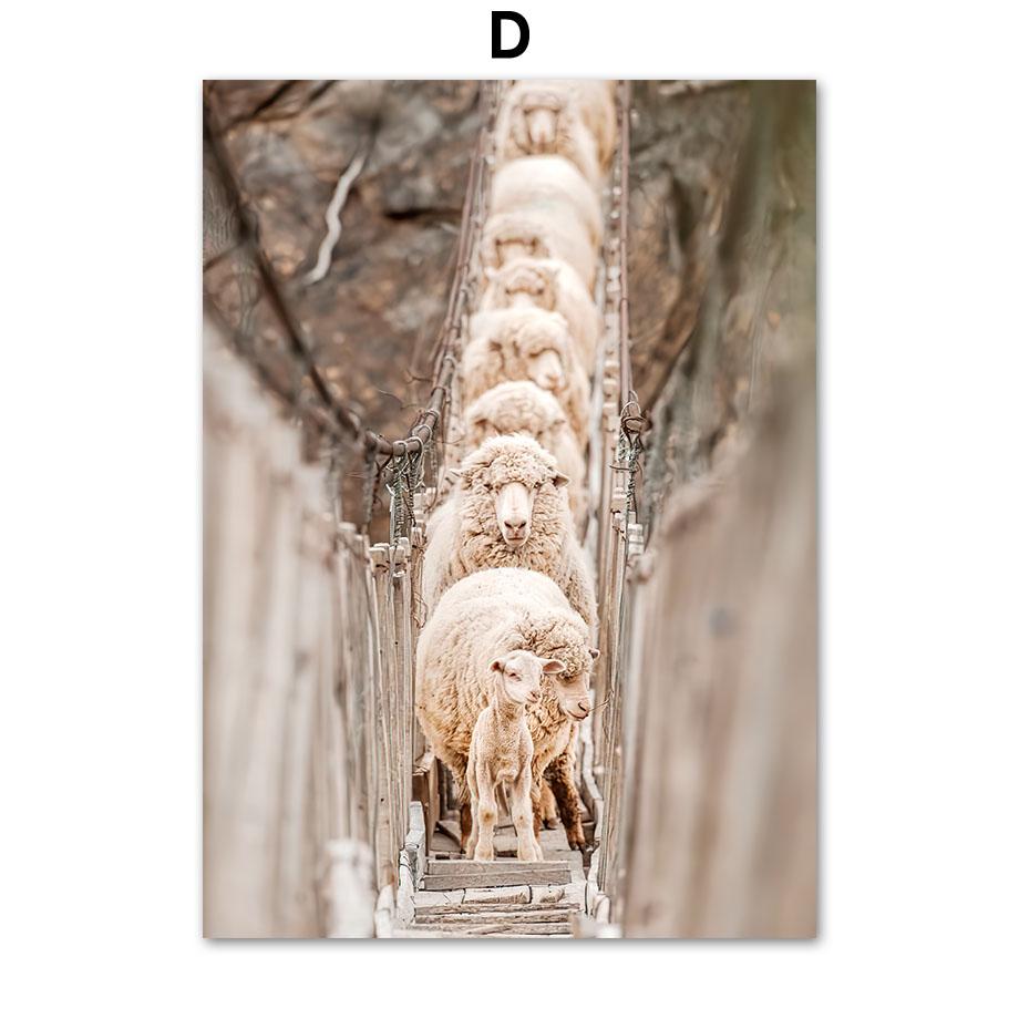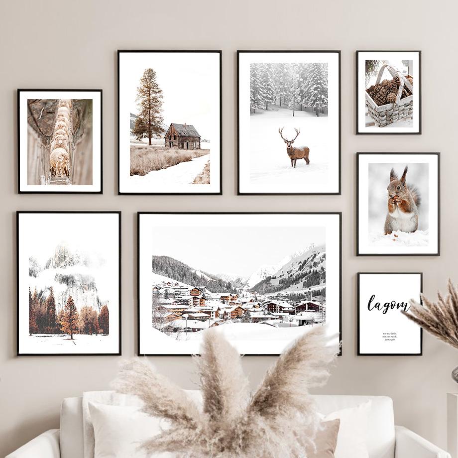 Овца, олень, белка, снежный горный мост, сосна, настенная живопись, холст, живопись, постеры и принты, настенные панно для декора гостиной