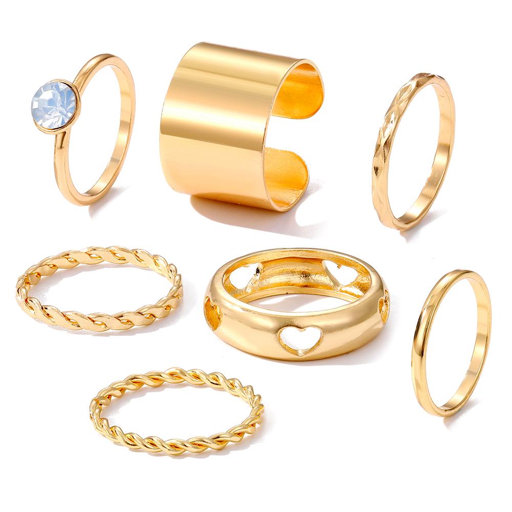 Набор из 7 предметов Щедрая любящая женщина Студенческое кольцо Выдалбленное кольцо с резьбой Роскошное простое индивидуальное очаровательное женское кольцо с кисточкой Набор колец для влюбленных Подарочное кольцо