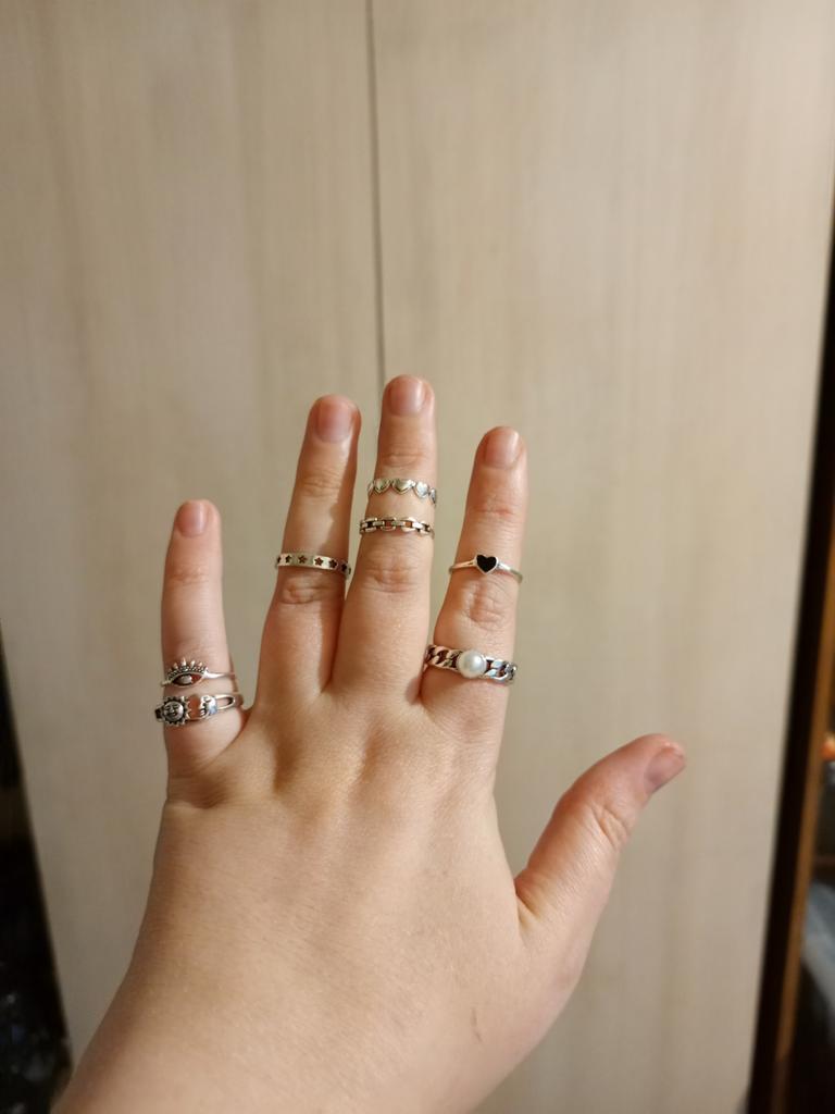Классные кольца. Выиграла за 1 р. На опухшую ручку все не налезут но этого и не надо. Буду комбинировать со своими кольцами