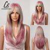 Смешанный светло-русый и розовый парик, длинные волнистые парики с челкой для женщин, синтетический парик, косплей, повседневные термостойкие волосы