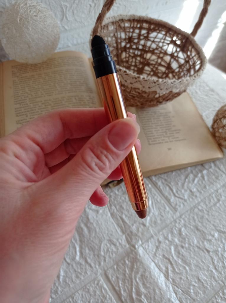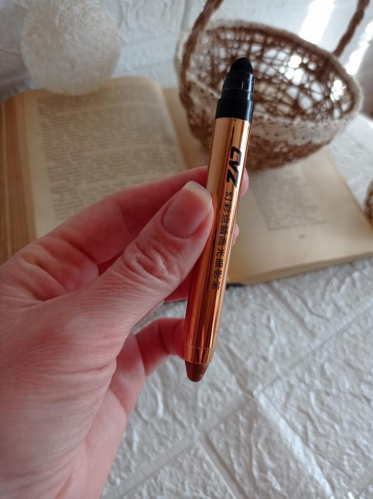 Тени-карандаш для век Выкручивающийся стержень делает их максимально удобными в использовании, не требуя затачивания. Текстура карандаша твердая, не маслянистая, не будет размазываться. На другой стороне - аппликатор для растушевывания. Цвет на коже светлее, чем на самом карандаше. Продавец предлагает 5 оттенков, все они с глиттером. Доставлен за месяц в почтовое отделение живым треком в сборной посылке 👍 Товар и продавца рекомендую 👍