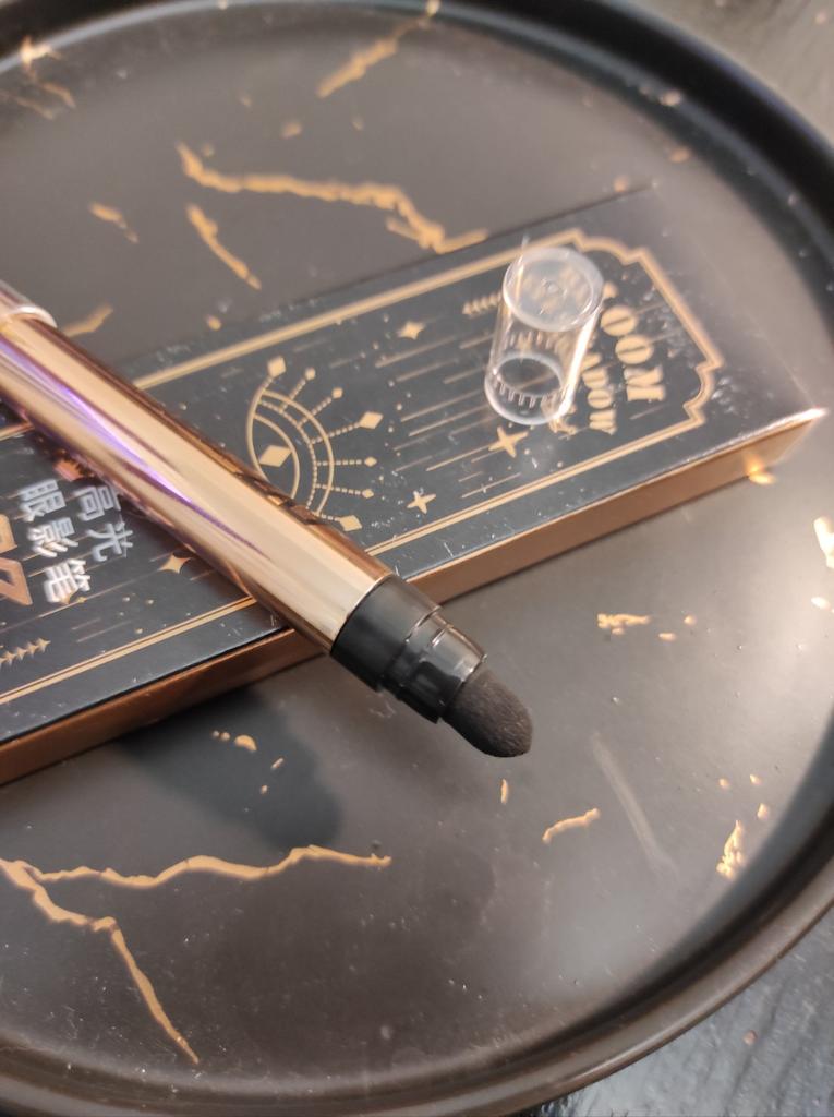 Тени В стике Золотистые с крупным золотым шиммером. Это я запасаюсь косметикой для новой постановки. Но если нам не подойдёт, подарю дочери, цвет как раз ее. С обратной стороны спонж для растушевки. Растушевывается, кстати, красиво. Хороший вариант.