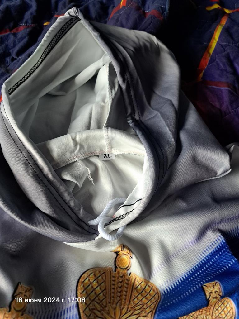 Очень большой размер.Налезла на человека 56размера,хотя заказывали XL.Длинющие рукава.Брали на подарок человеку,естественно такой огромный размер дарить не будем.Разочарована.И расцветка не такая немного.Цвета яркие,ткань тонкая не для толстовки,а больше как плотная футболка с капюшоном.Белый верхний цвет не белый,а серый,хотя на фото стоит белый.