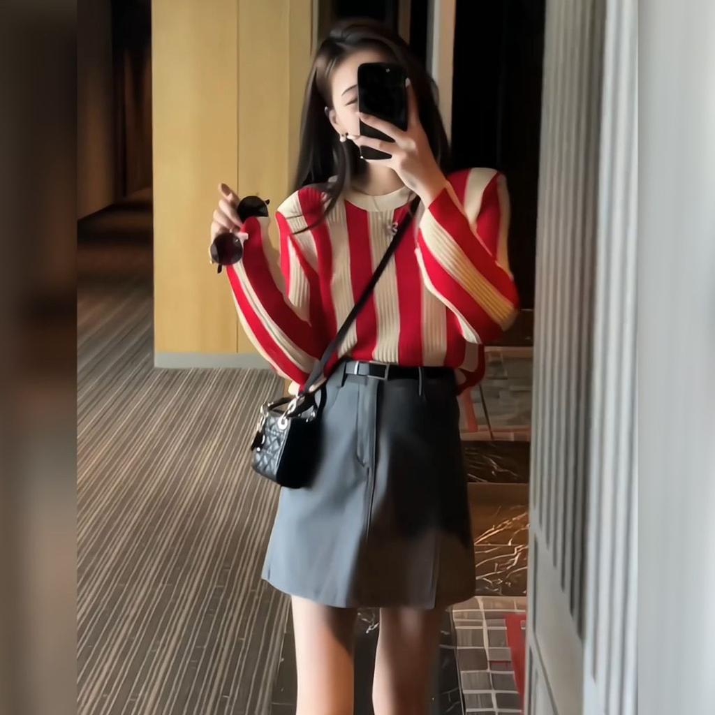 Летняя и весенняя дизайнерская полосатая футболка с длинными рукавами и круглым вырезом, женский пуловер, 2023, повседневный свитер с длинными рукавами, женский пуловер