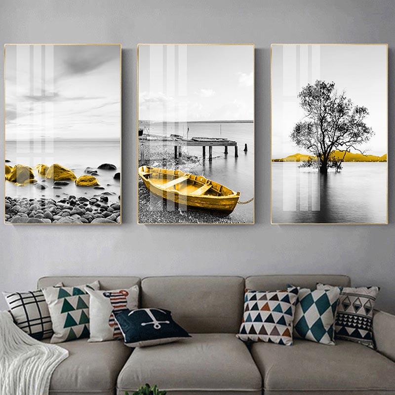 Скандинавские плакаты с изображением лодки и дерева, пейзаж, печать на холсте, картины с мостом через озеро, настенное искусство, современный домашний декор, фотографии для гостиной