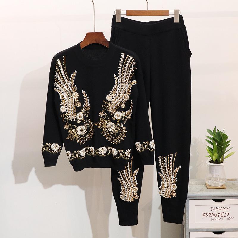 Европейская и американская мода, расшитый бисером и блестками, свитер с длинными рукавами, шаровары, женский костюм из двух предметов — купить товар онлайн с бесплатной доставкой по всему миру!