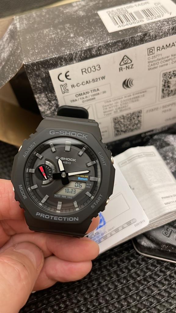 Неплохие часы за вменяемые деньги. Доставка - чуть меньше месяца. Упаковка стандартная: почтовая и заводская картонные коробки, металлическая банка с часами. Инструкция, оформленный гарантийный талон. Трек-номер отслеживался на протяжении всего пути... Часы (как и культовая модель G-Shock 5600) стали, на мой взгляд, настоящей легендой. Я, как и многие их владельцы, "не смог пройти мимо". Нравится их небольшой вес и размеры, Bluetooth и солнечная батарея, отсутствие лишних выступающих элементов на корпусе, а также возможность кастомизации: ремешки-браслеты, "внешний корпус"... Вполне подойдут людям, "уставшим" от смарт-электроники, но не желающим совсем отказываться от "благ цивилизации"...