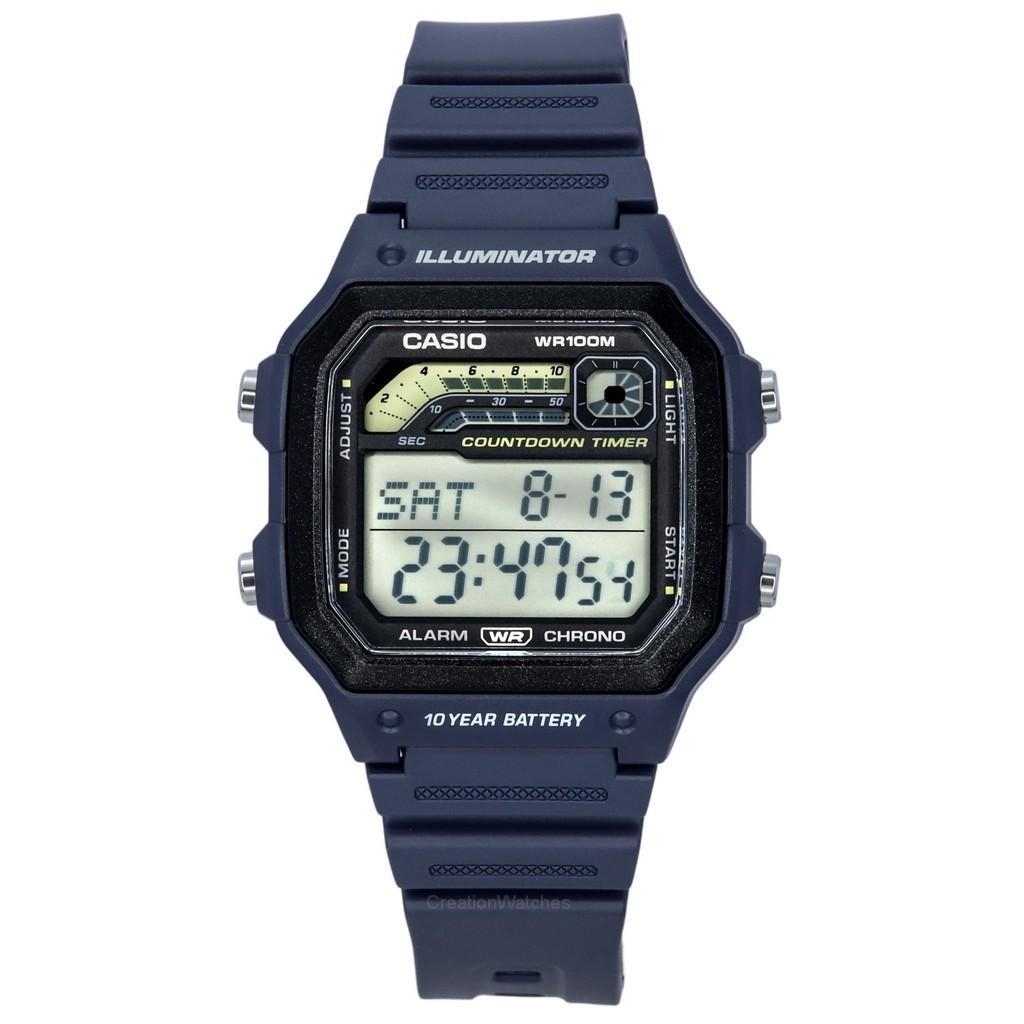 Кварцевые мужские часы Casio Standard Digital с синим полимерным ремешком WS-1600H-2A 100M — купить товар онлайн с бесплатной доставкой по всему миру!