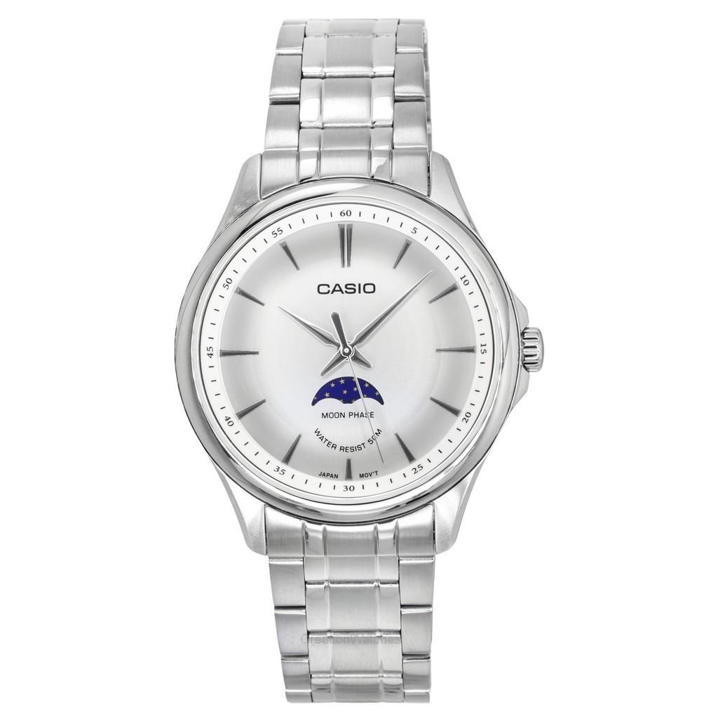 Casio Стандартные аналоговые кварцевые мужские часы из нержавеющей стали с серебряным циферблатом и фазой Луны MTP-M100D-7A