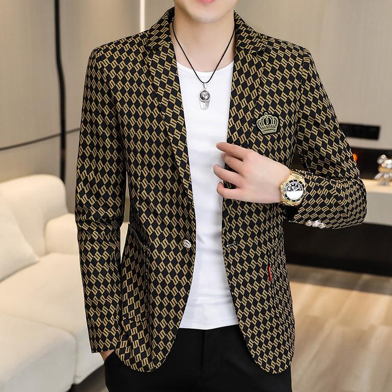 Весенние пиджаки с буквенным принтом и короной, мужские облегающие повседневные пиджаки, свадебные уличные платья, пальто, пиджак Masculino