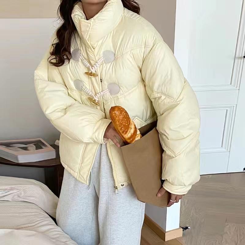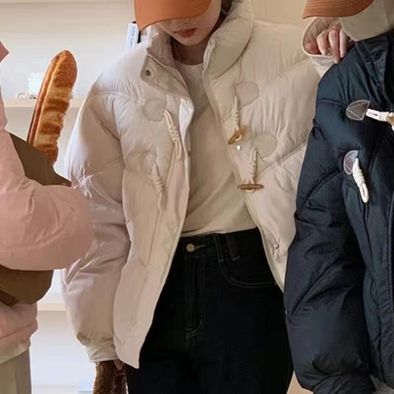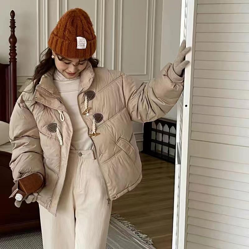 Высококачественная короткая стеганая куртка на пуговицах с рогами для женщин, модная хлопковая пуховая куртка