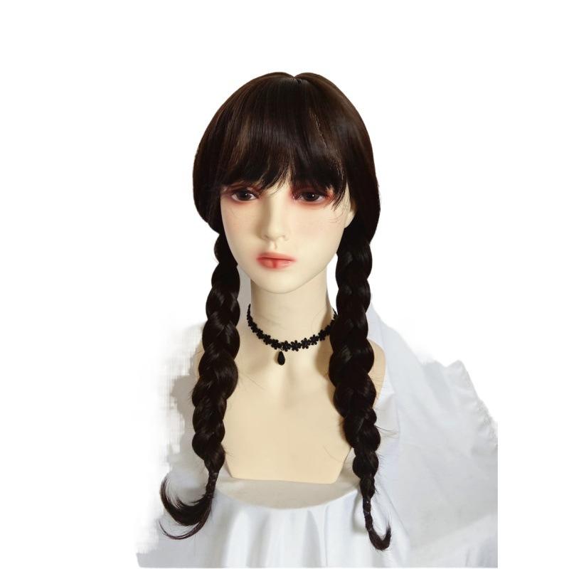 Черный парик с двойной косичкой и двойным хвостом