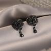 Очаровательные женские серьги с черными цветами и кубическим цирконием, свадебные серьги с каплями воды для женщин, роскошные винтажные серьги-гвоздики с маленькими камнями