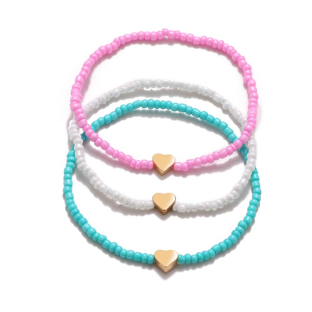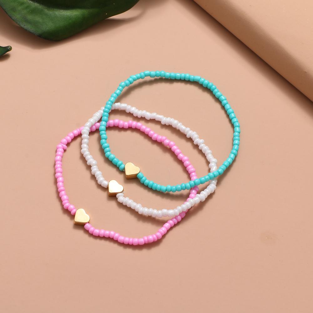 Минималистичный набор разноцветных браслетов из рисовых бусин, модный женский комплект ювелирных украшений Love, подарочный набор из трех предметов