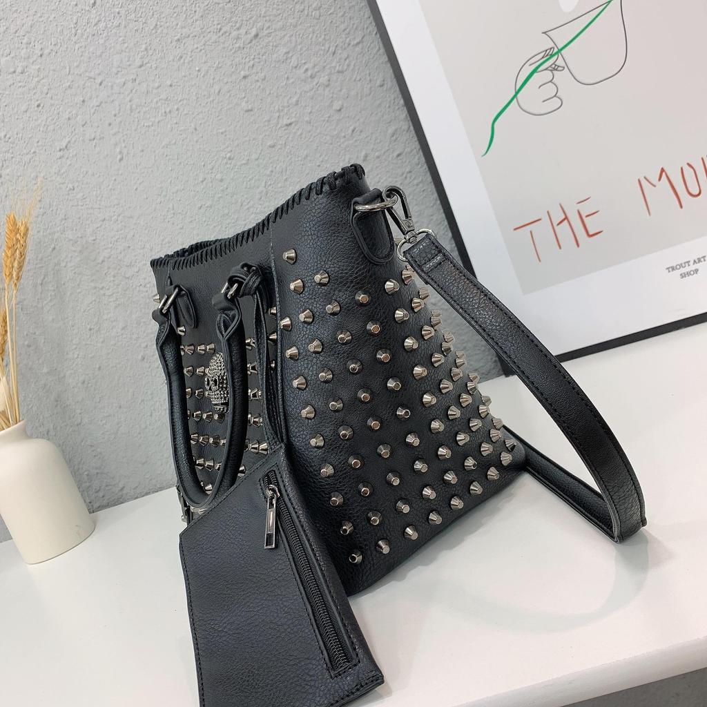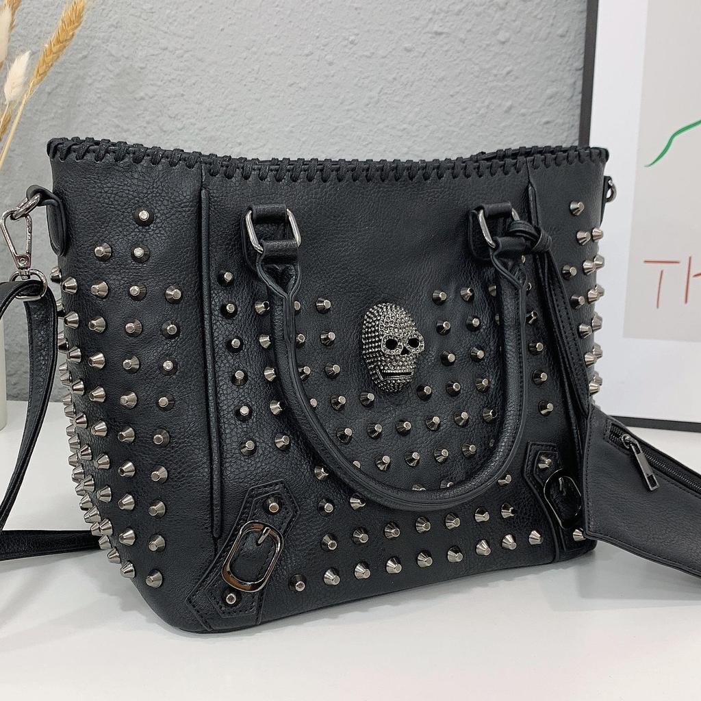 Уличная женская сумка, модная сумка на одно плечо, диагональная сумка с заклепками, сумочка с черепом