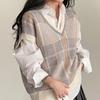 Винтажный клетчатый свитер с v-образным вырезом, жилет, женский осенне-зимний винтажный вязаный свитер, пуловер, свободный корейский трикотаж, топы Pull Femme 23875