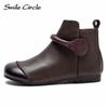 Женские ботинки из натуральной кожи, ботильоны с круглым носком и боковой молнией, модные удобные туфли на плоской подошве — купить товар онлайн с бесплатной доставкой до всему миру!