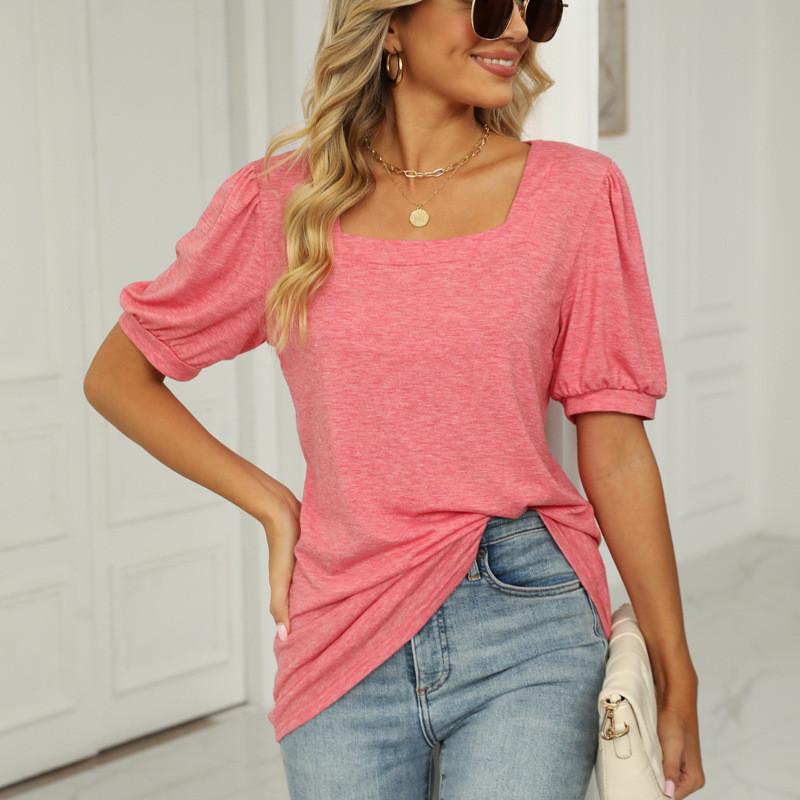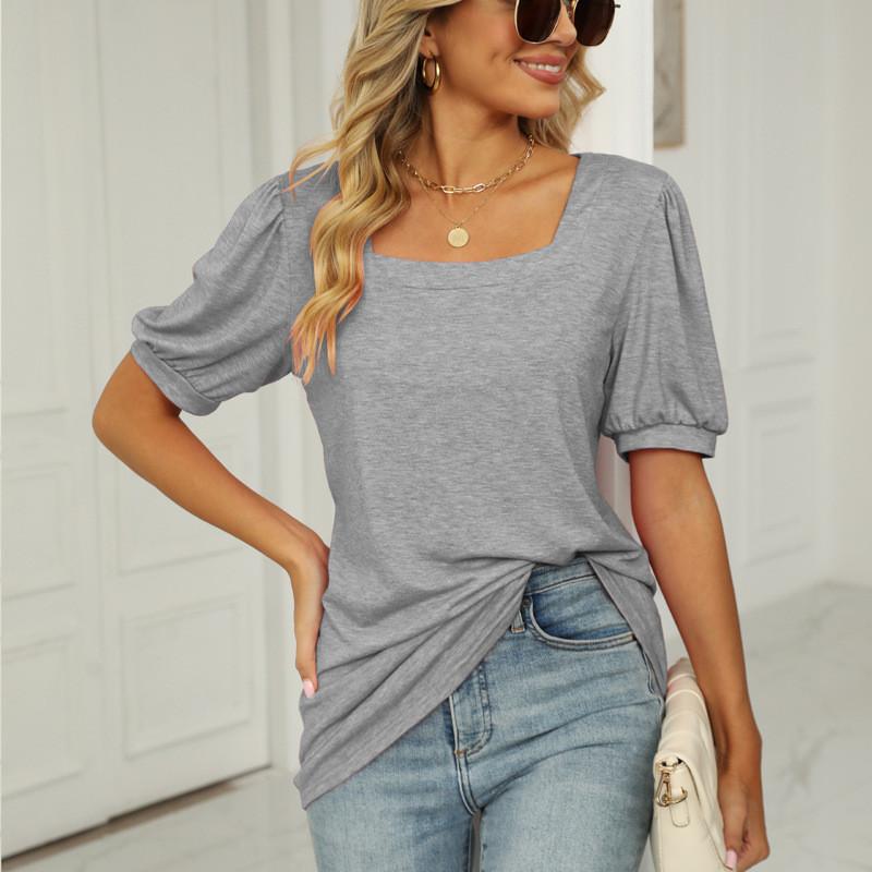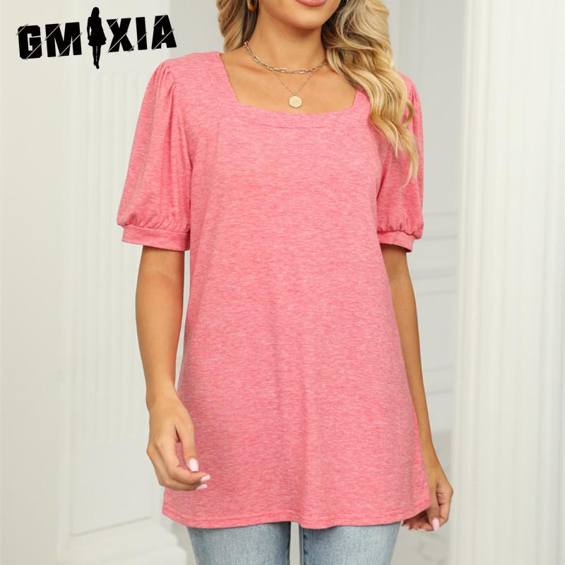 GMXIA Женские модные повседневные однотонные блузки и рубашки с квадратным воротником и короткими рукавами с принтом