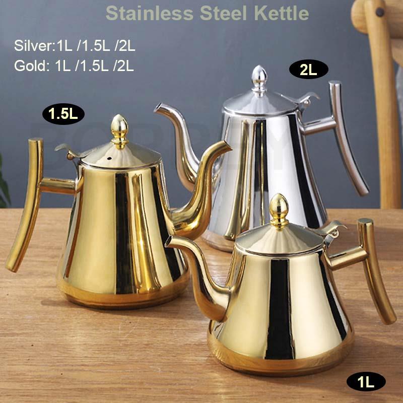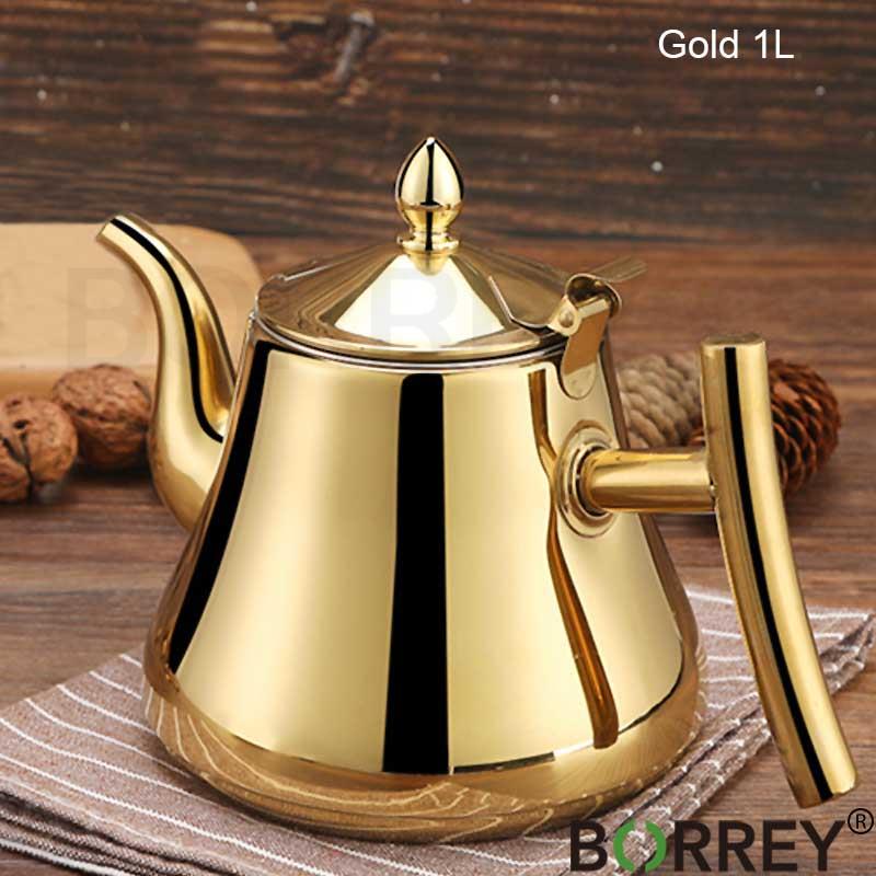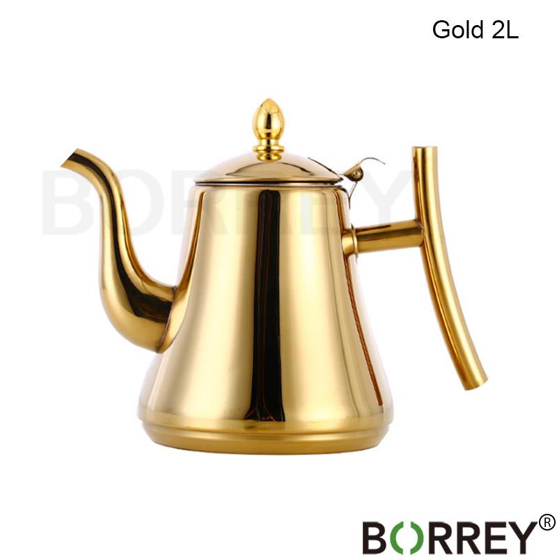 BORREY 1 л/1,5 л/2 л кофейник из нержавеющей стали, золотой чайник с фильтром, металлический чайник, газовая плита, индукционная плита, чайник