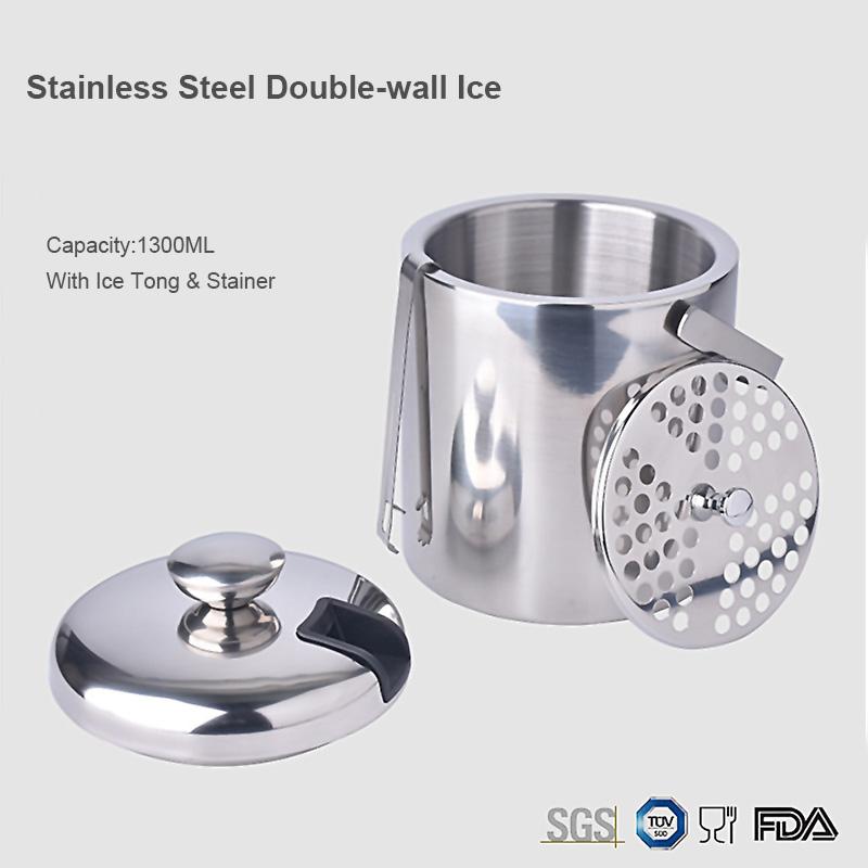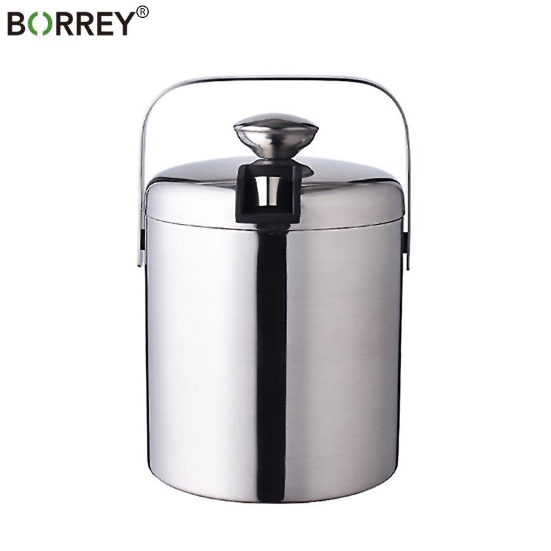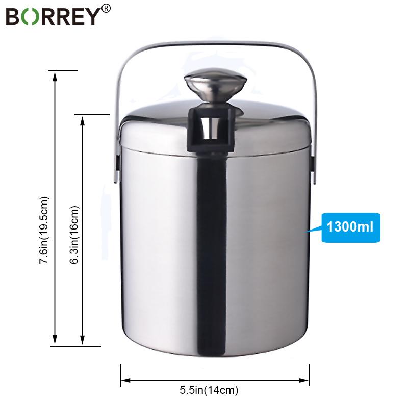 BORREY 1,3 л ведро для льда из нержавеющей стали, ведро для льда, винная бочка, контейнер с щипцами, ручкой для вечеринок, принадлежности для клубного бара