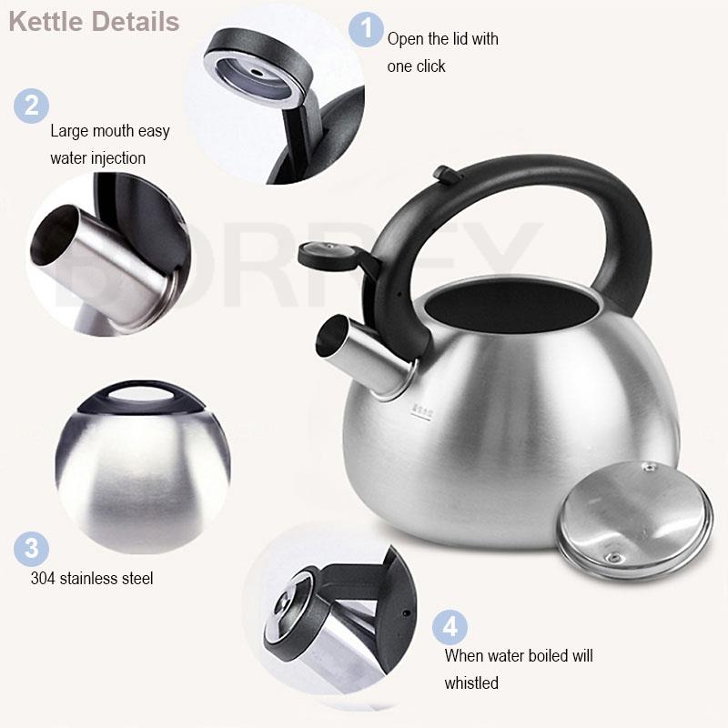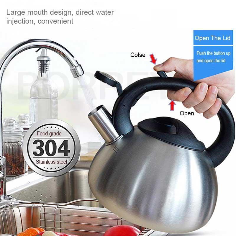 BORREY свисток для чайника, чайник со свистком, газовая плита, индукционный металлический чайник, походная посуда с кипящей водой, 3 л