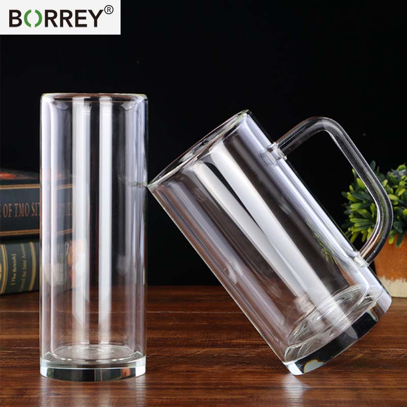BORREYСтеклянная чашка с двойными стенками, термостойкая кружка для здорового напитка, кружка для кофе, молока, фруктового сока, чая, прозрачная офисная посуда для напитков, бутылка