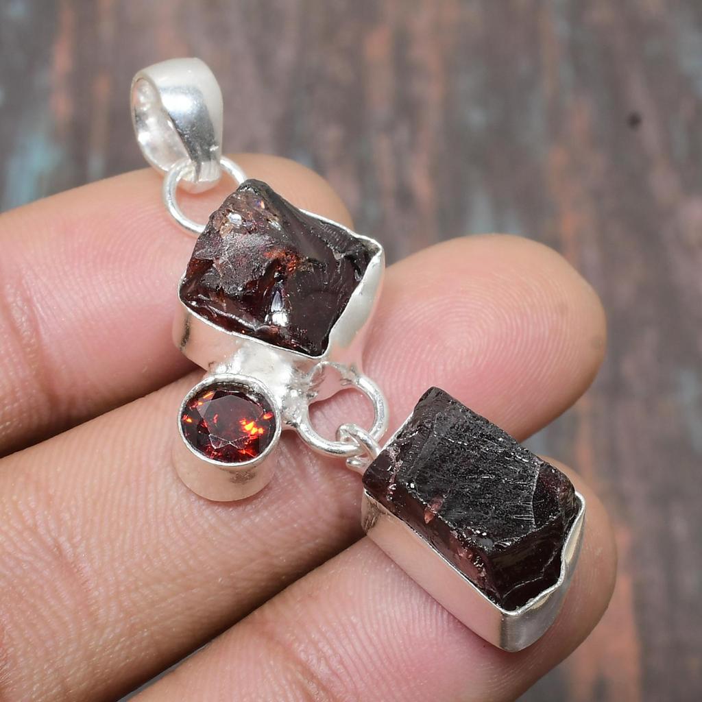 Ювелирный кулон ручной работы из стерлингового серебра 925 пробы с грубым розовым турмалином и дымчатым топазом — купить товар онлайн с бесплатной доставкой по всему миру!