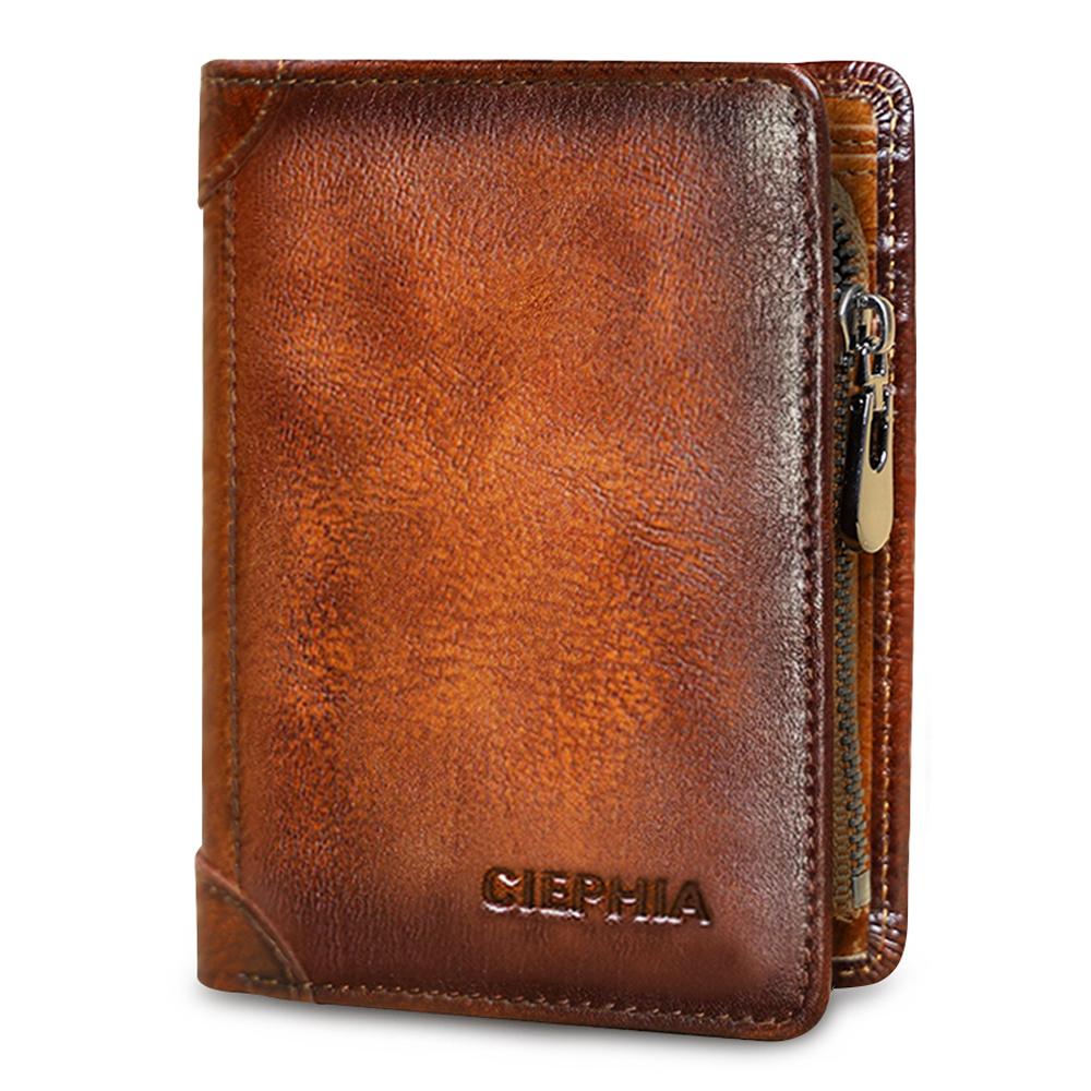 Кошельки из натуральной кожи для мужчин, винтажный короткий многофункциональный деловой кошелек, RFID-блокировка, молния, ID, держатель для кредитных карт, сумка для денег