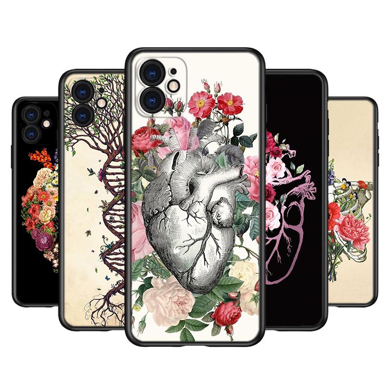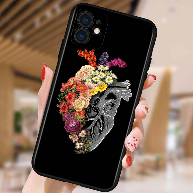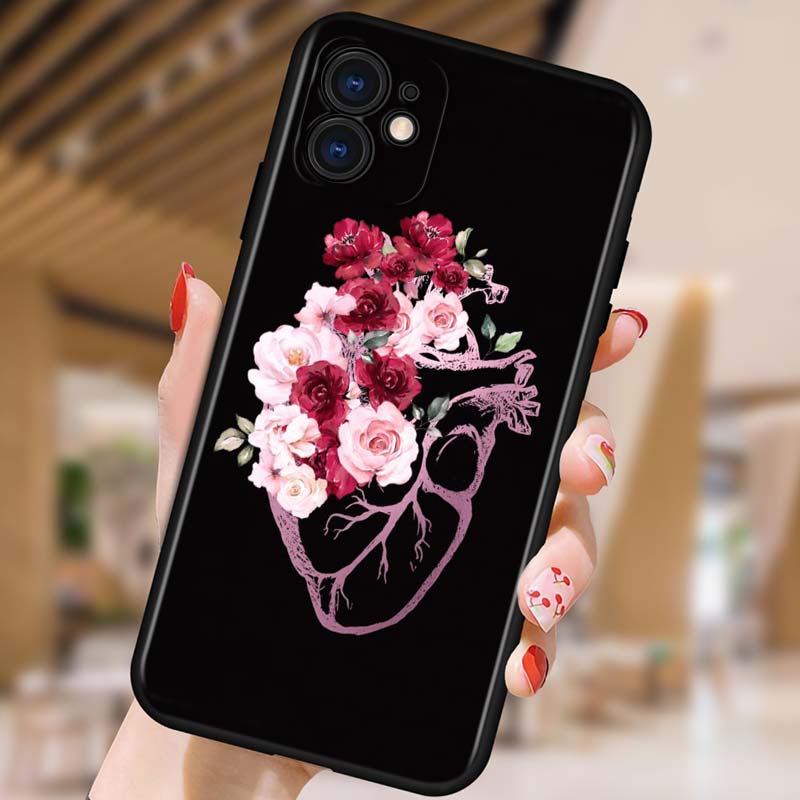 Чехол с изображением человеческого сердца и цветка для телефона iPhone Samsung Galaxy Redmi Xiaomi Oppo OnePlus Note SA 7 8 9 10 11 12 13 14 20 21 22 23 53 54 Pro Max Ultra