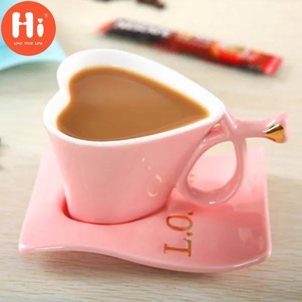 Привет, керамическая кофейная кружка, чашки в форме сердца, синяя креативная молочная кружка с ложкой, подарочные наборы чашек на день Святого Валентина для влюбленных