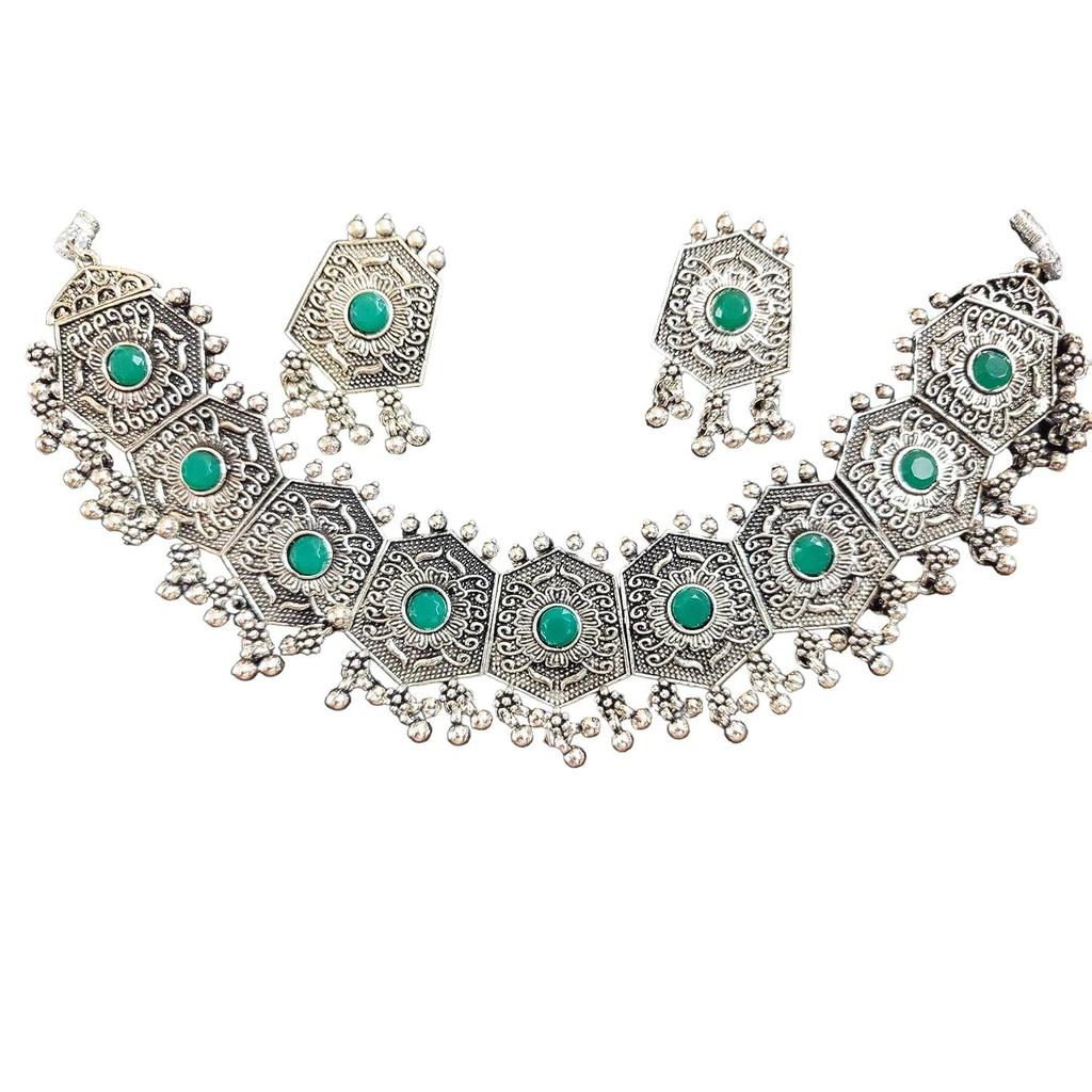 Ожерелья из окисленных камней – это гораздо больше, чем обычные веревки на шее.. Ожерелья-чокеры - все, что вам нужно, чтобы завершить свой этнический наряд. Ожерелья этого типа чрезвычайно универсальны, поскольку они хорошо сочетаются с любой этнической одеждой, включая лехенгас, сари и платья шарара.. Один из самых изысканных и впечатляющих видов ошейников, которые когда-либо существовали, — это чокеры.. Доступные во множестве стилей и дизайнов, они являются свидетельством универсальности, которая не знает границ, потому что их можно сочетать практически с любой одеждой.. Наряжаетесь ли вы в модный или этнический ансамбль, для каждого платья найдется чокер! Даже для свадебной лехенги, если уж на то пошло.. Вы никогда не ошибетесь с колье-чокером! Ожерелья-чокеры в индийском стиле с незапамятных времен являются основным элементом свадебных вечеринок и традиционных мероприятий, а почему бы и нет? Красиво сделанные и украшенные драгоценными камнями, они идеально подходят к этническим нарядам! Ожерелье-ошейник — это тип модного аксессуара, который может преобразить даже самый простой из традиционных нарядов! Носите его на традиционные мероприятия или свадьбы.. Мы подумали, почему бы не сохранить это великолепие для вас.